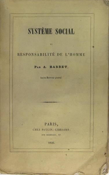 Paris, chez Paulin libraire, 1846. Grand in-8 (23 x 14 cm) broché, couverture imprimée, 364 p., 2 f., XIII p., 3 f. Exemplaire non coupé en bon état hormis quelques rousseurs. Auguste Barbet : Economiste, Conseiller général de la Seine Maritime en 1831, Receveur général des Finances à Montpellier.