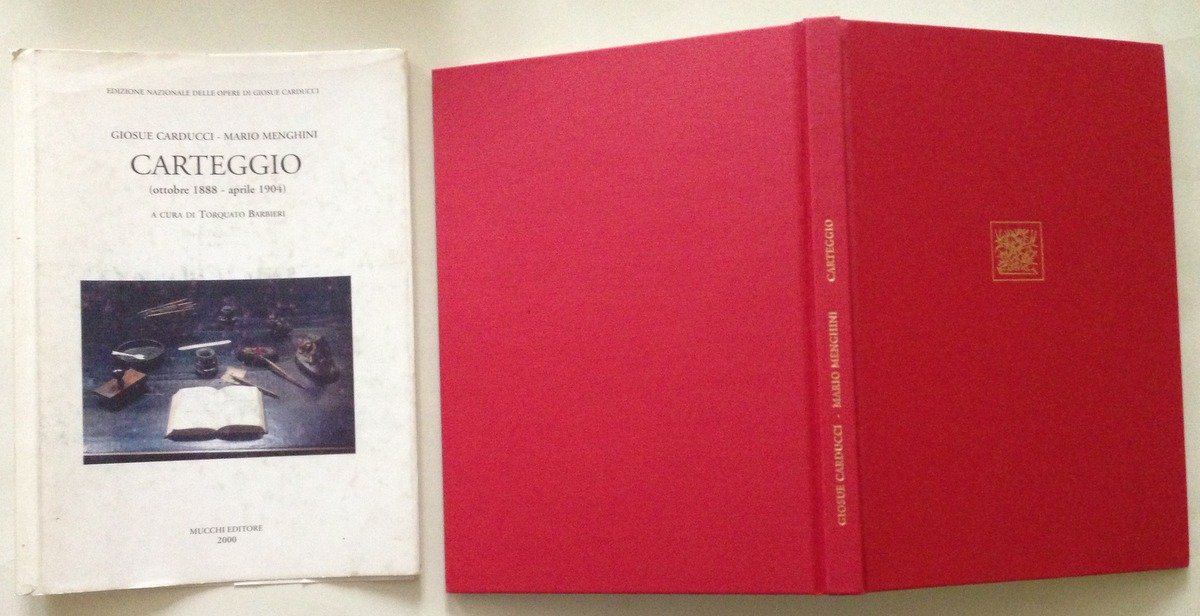 T. Barbieri (a cura di), Giosue Carducci- Mario Menghini Carteggio (ottobre 1888 - aprile 1904) Mucchi Editore, 2000; cm. 28.5x20.5, pp. 195; timbro copia di saggio fuori commercio al frontespizio; con tavv. in b/n f.t. e a p.pag.; cartonato ed. rilegato con sovracop. ed. ill., annessi fascicoli edizione nazionale delle opere di G. Carducci, biglietto editore e invito conferenza. Condizioni di conservazione Esemplare in buono stato con leggere tracce d'uso; solo sovracoperta editoriale con alcune macchiette e con minimi strappetti ai margini e al dorso. SETT148.L14595 MT