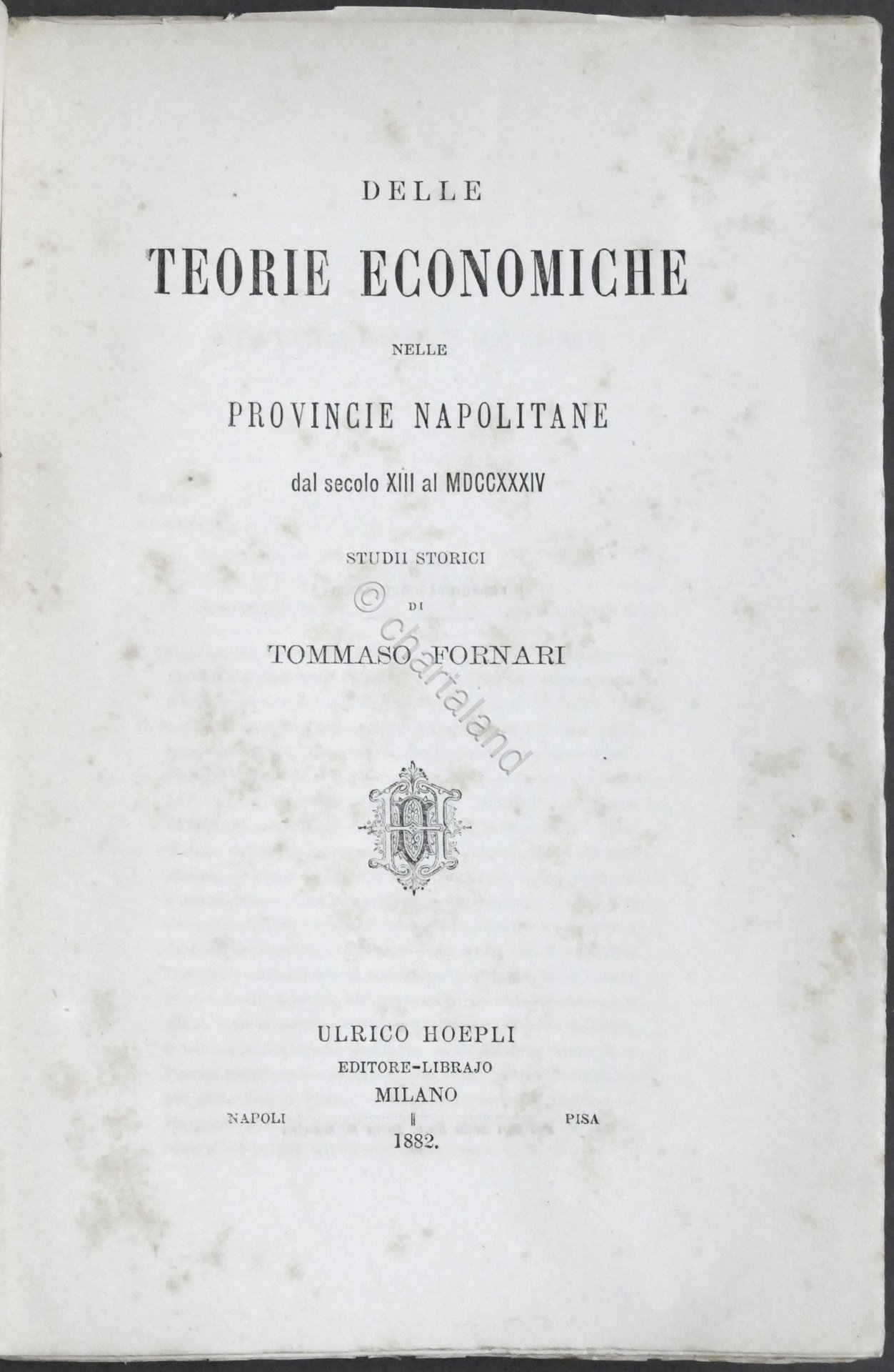 Delle teorie economiche nelle provincie napolitane dal secolo XIII al MDCCXXXIV - Studii storici di Tommaso Fornari - ed. 1882 Hoepli