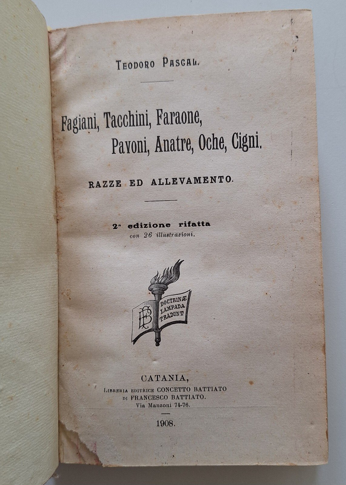 T. PASCAL FAGIANI TACCHINI FARAONE CATANIA F. BATTIATO 1908P. BENEDETTO ARTE DI ABBELLIRE I POSSEDIMENTI AGRICOLI CATANIA F. BATTIATO 1911