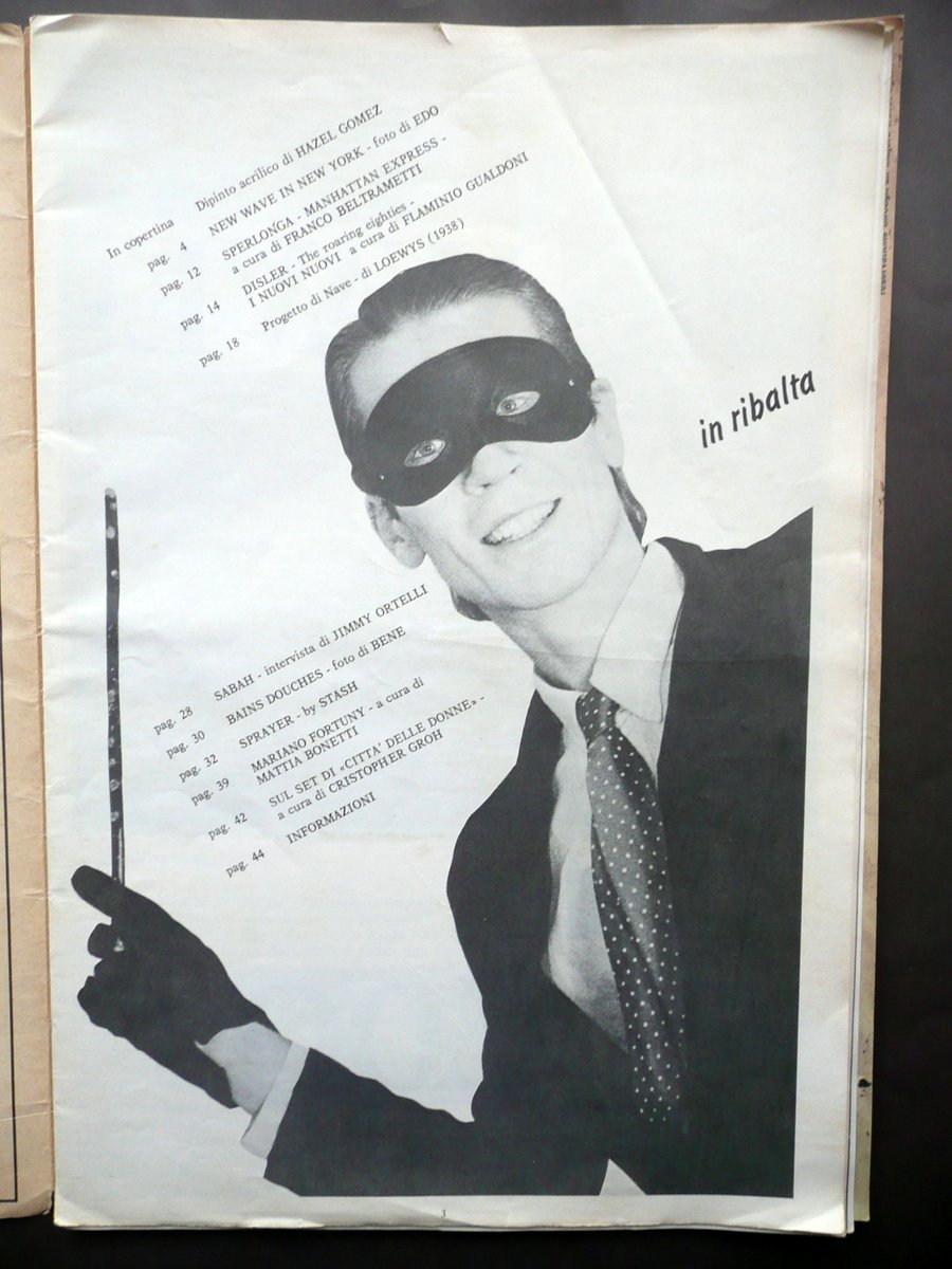 Rivista, T - Ribalta" Magazine Numero 3 Lugano - Maggio 1980 Lugano 1980, cm 41,5x28, pp. 48 con numerose ill. in b/n (qualcuna a colori) nel t., fuori t. e su due pagine (vedi foto); esemplare a fogli sciolti, con copertina ill. a colori (dipinto di Hazel Gomez). Numero completo. Condizioni di conservazione: Esemplare ben conservato con tracce d'uso, poche minuscole bruniture e trascurabile traccia di piega centrale di conservazione; copertina lievemente ingiallita al lato post., con pochi minimi strappetti ai margini e alla cuffia inf. (il minimo strappetto alla cuffia inf. interessa anche alcune pagine, mai mai il testo o le illustrazioni); angoli della copertina e di qualcuna delle prime pagine con un minimo accenno di pieghetta. Bella rivista d'arte d'avanguardia, con numerose illustrazioni in bianco e nero (qualcuna a colori) nel testo, fuori testo e su due pagine (vedi foto indice). Bel poster centrale a colori, nel quale è riprodotta una fotografia di Benedicte (vedi foto). Numero completo. SC03.D11799 N "