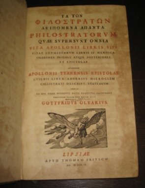 Ta ton Philostraton Leipomena Apanta. Philostratorum quae supersunt omnia. Vita Apollonii libris VIII, Vitae sophistarum libris II, Heroica. Imagines priores atque posteriores et Epistolae : Acessere Apollonii Tyanensis Epistolae, Eusebii Liber adversus Hieroclem, Callistrati Descript. statuarum. Omnia ex mss. codd. recensuit, notis perpetuis illustravit, versionem totam fere novam fecit Gottfridus Olearius
