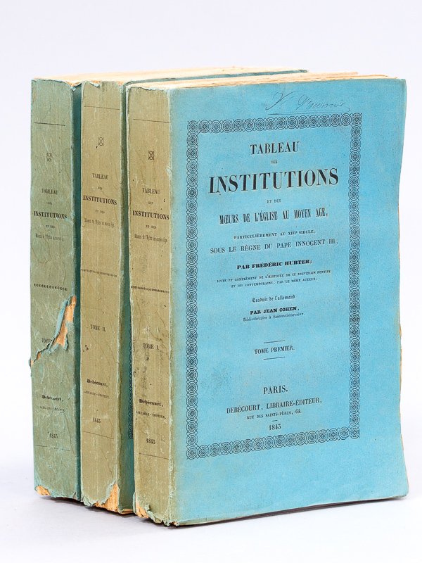 Tableau des Institutions et des Moeurs de l'Eglise au Moyen-Age, particulièrement au treizième siècle, sous le règne du pape Innocent III (3 Tomes - Complet).