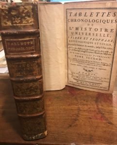 TABLETTES CHRONOLOGIQUES DE L´HISTOIRE UNIVERSELLE, SACREE ET PROPHANE, ECCLESIASTIQUE ET CIVILE, DEPUIS LA CREATION DU MONDE, JUSQU´A L´AN 1762. AVEC DES REFLEXIONS SUR L´ORDRE QU´ON DOIT TENIR, ET SUR LES OUVRAGES NECESSAIRES POUR L´ETUDE DE L´HISTOIRE. 2 TOMI