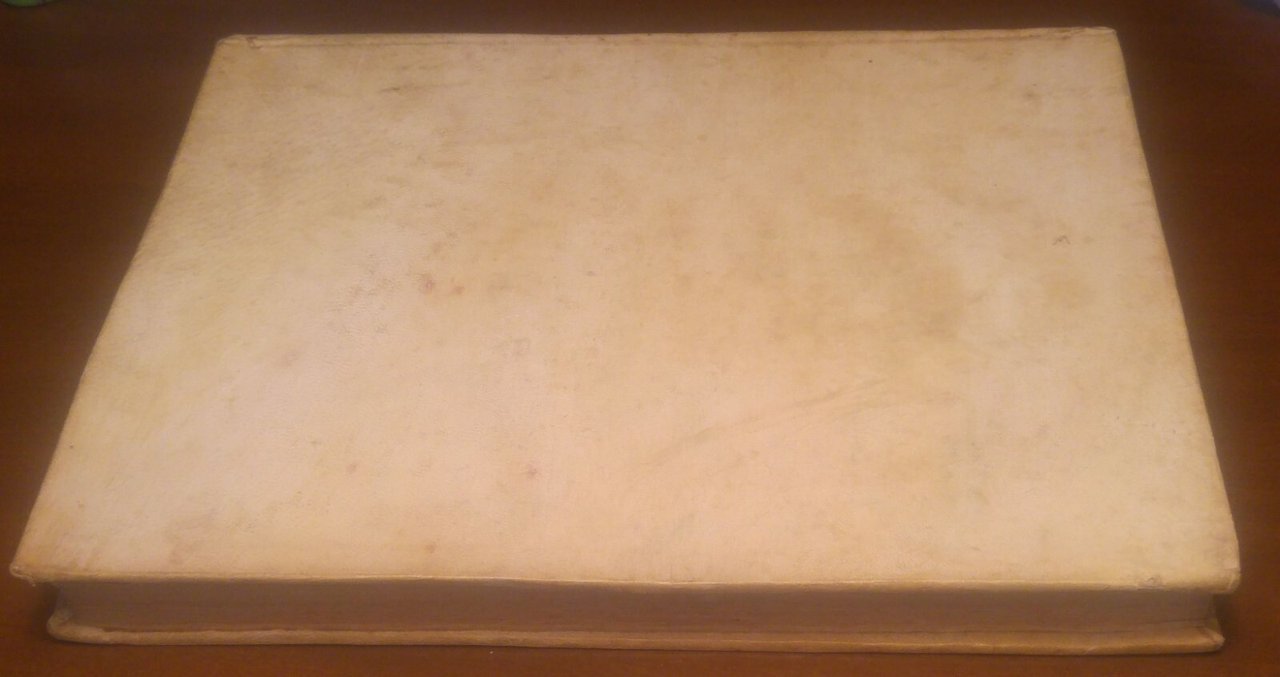 Copertina in tutta pergamena con titolo manoscritto al dorso.