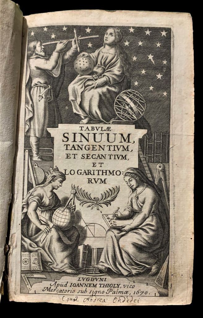 In 8°; 56, (288) pp. e una c. di carta in antiporta. Bella legatura coeva in piena pergamena con titolo e autore, manoscritto da mano coeva nei tasselli. Dorso a 5 nervi. Antica nota di possesso privato alla prima carta bianca, coperta da pecetta ma ben visibile in controluce Ex-Libris Ioan: Vincentij Petrini e al margine basso bianco dell'antiporta Cona Andrea Ondedei. Petrini, probabilmente, è il celebre geologo ed esperto di minerali, Giovanni Vincenzo Petrini che fu con Scipione Breislak (1748 1826), Carlo Giuseppe Gismondi (1762 1824) ed Adolfo Brattina (1852 1935) il fondatore del Museo di Storia e scienza al Museo Naturalistico Mineralogico del Collegio Nazareno di Roma e a lui si deve la nascita del Gabinetto di Minerologia. Appartenente all'ordine dei padri Scolopi, venne da questo espulso per le sue idee troppo illuministiche e giacobine. Rara edizione, come tutte le edizioni seicentesche, di una delle più celebri opere del famoso matematico, astronomo ed editore olandese, Adriaan Vlacq (Gouda, 1600? L'Aia, 1667). Esemplare uniformemente e leggermente brunito ma nel complesso in ottime condizioni di conservazione. Rif. Bibl.: ETH-Bibliothek Zürich, Rar 5322.
