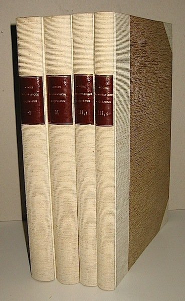4to (cm. 33,5), 4 Voll., XIV-426 pp. con 6 tavv.; 480 pp. con 5 tavv.; XIX-313 pp. con 1 tav. rip.; XV-245 pp. con 6 tavv. Legature in mz. tela con angoli e titolo oro su tassello in pelle al ds. Eccellente esemplare. Opera rara.