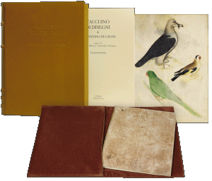 Codice: 31 carte pergamenacee. Interamente illustrato a colori. Legatura d'archivio in busta di velluto. cm 19 x 26 x 1. gr 395. Commentario: 64 pagine. 6 ill. a colori. Brossura. cm 21 x 30 x 0,7. gr 369. Cofanetto di custodia contenente il codice e il commentario: cm 24 x 33 x 4,5. gr 1560. Riproduzione in facsimile dell'originale (1390-1405 ca) conservato nella Biblioteca Civica "Angelo Mai" di Bergamo (Cassaf. 1.21). Collana: Ars illuminandi. Commento dell'editore: Il "Taccuino di disegni" di Giovannin