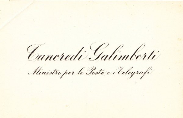 biglietto da visita di Tancredi Galimberti "Ministro per le Poste e i Telegrafi"; buon es.