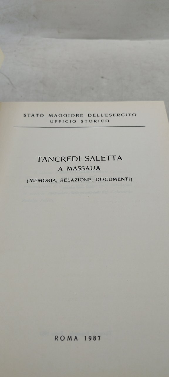 stato maggiore dell'esercito ufficio storico tancredi saletta a massaua memoria relazione documenti. , roma 1987 1987 italiano, 531 °°