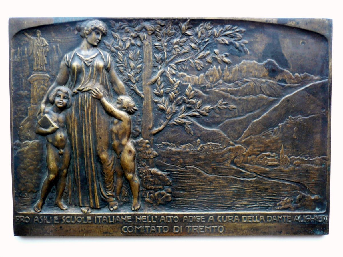 Targa in Bronzo Pro Asili Scuole Italiane Alto Adige Comitato di Trento Anni '20