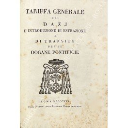 Tariffa generale dei dazj d'introduzione di estrazione e di transito per le dogane pontificie