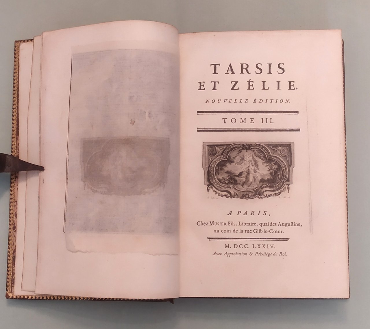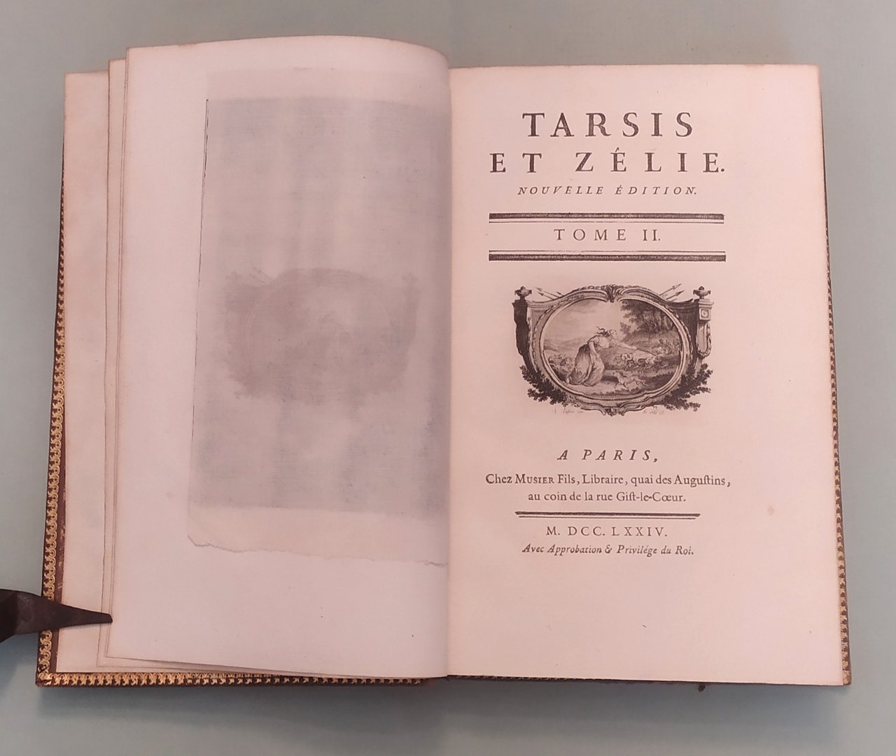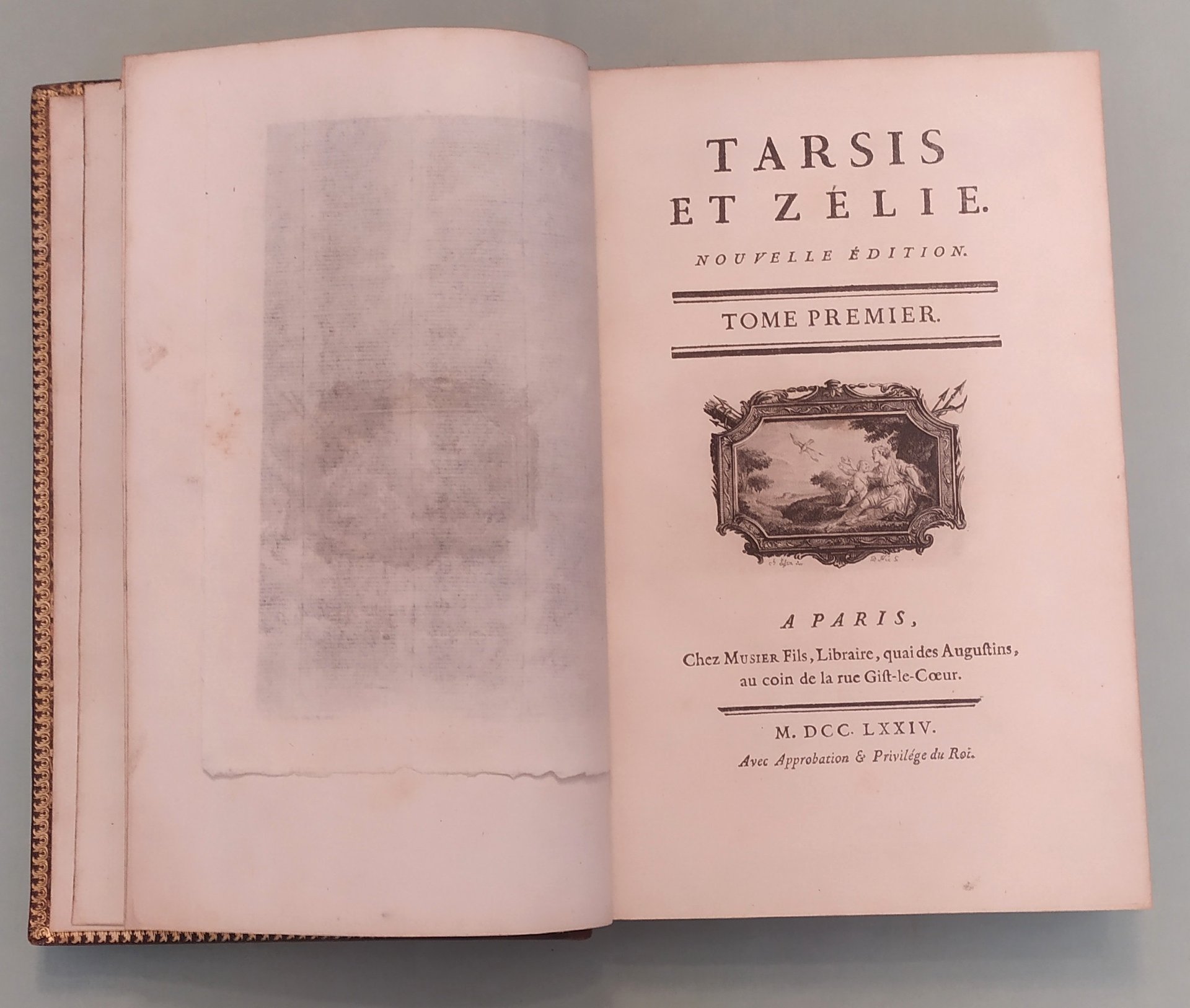 A Paris, chez Musier fils, 1774. 3 volumi in 8vo (cm.23x16); pp.IV, XXIII, 563, cc. 2n.nn; 563; 597. Tre antiporte di Cochin, Moreau e Eisen incise da Gaucher, Ponce e Nèe. Tre vignette ai frontespizi e 20 vignette all’inizio di ciascun libro di Eisen incise da Helman, de Longueil, Masquelier, Massard, Nèe e Ponce. Legatura coeva in bazzana marmorizzata. Dentelles e fregi dorati ai piatti. Dorso a cordoni, tassello con titoli e fregi in oro. Tagli marmorizzati. Esemplare nitido. L’autore, famoso giureconsulto seicentesco e intendente dei Sassoni, pubblicò anonimo questo romanzo pastorale. La bellezza dei disegni e la delicatezza delle incisioni rendono questa edizione più rinomata delle precedenti, l'unica citata da Cohen, 643.