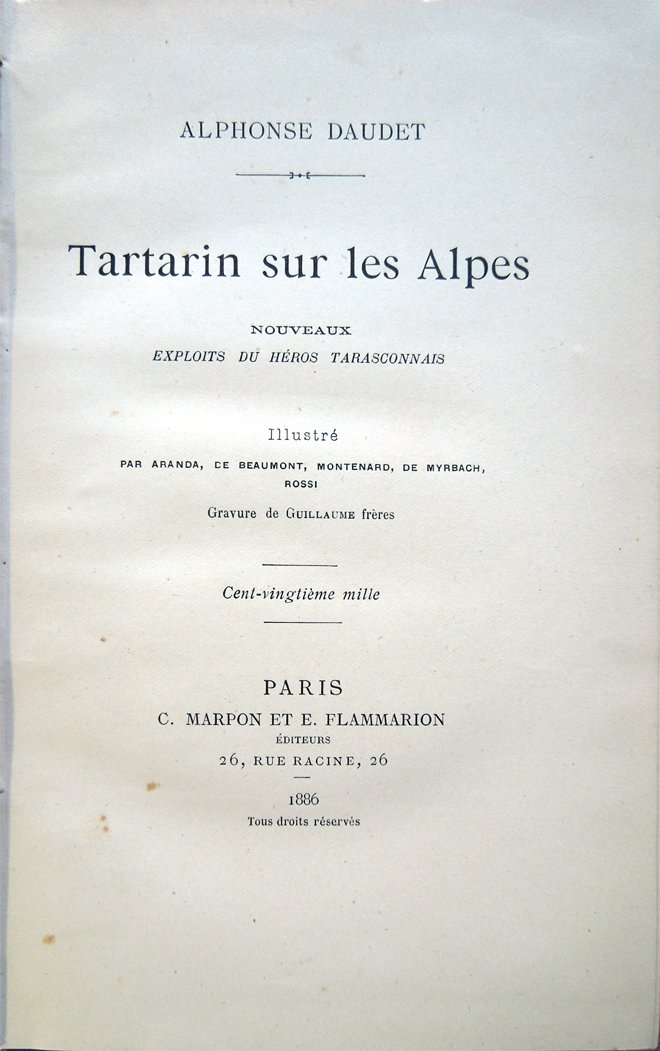 Tartarin sur les Alpes. Nouveaux exploits du héros tarasconnais. Illustré par Aranda, De Beaumont, Montenard, De Myrbach, Rossi. Gravure de Guillaume frères. Cent-vingtième mille