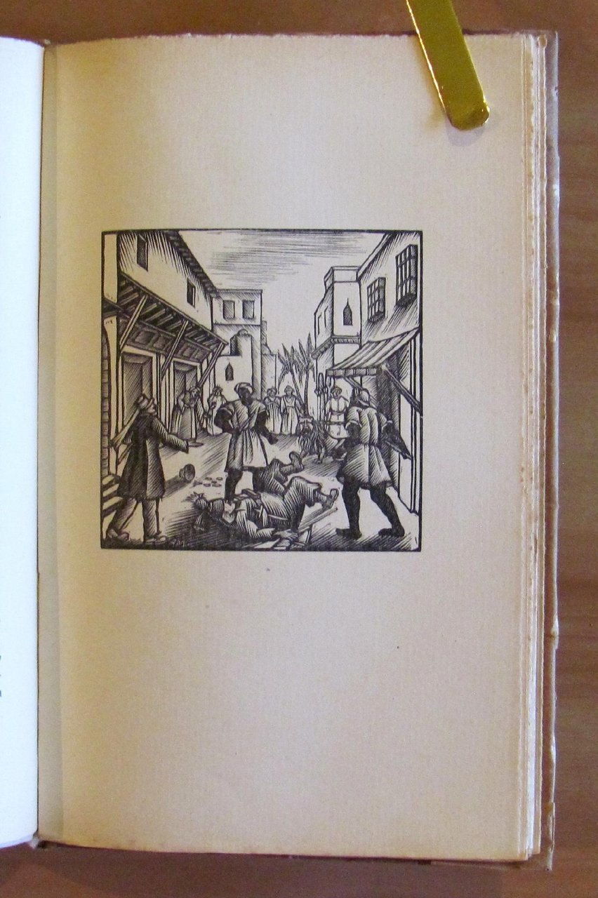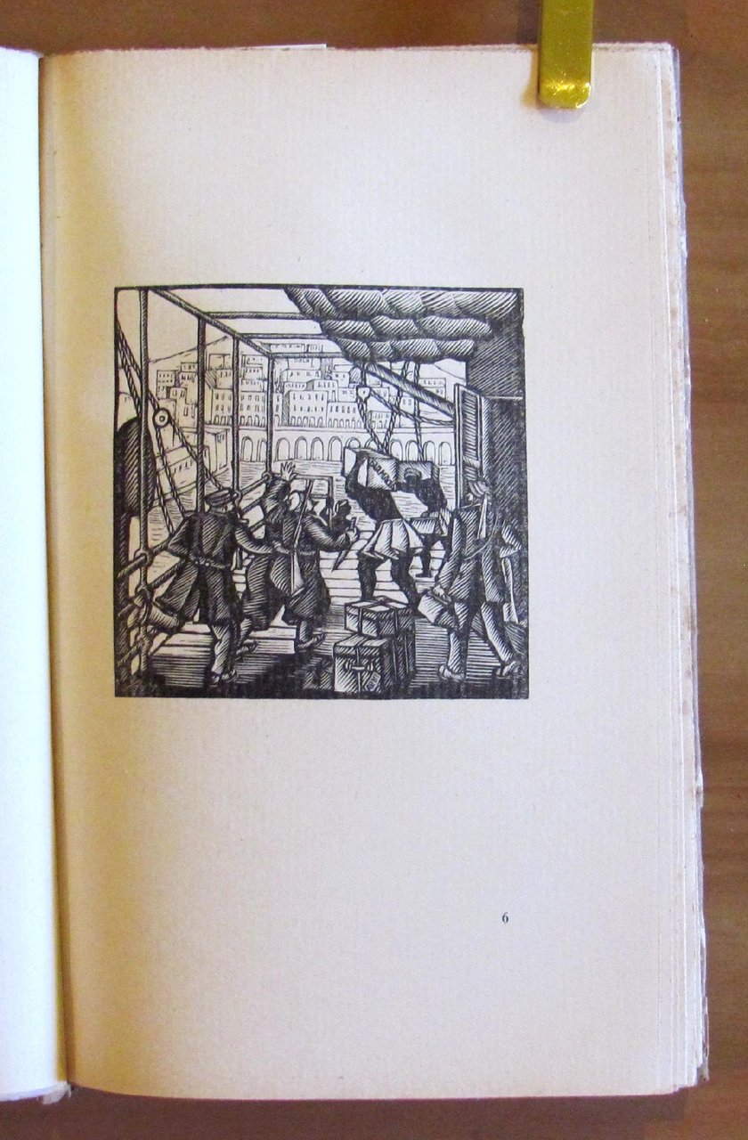 Testatine e molte tavole xilografiche in b/n f.t. di Anna Maraviglia. Editore Formiggini - Roma, 1934. Copertina editoriale in carta pergamenata con ali. Lieve brunitura del tempo al dorso. Taglietto restaurata alla prima pagina bianca del primo capitolo. Interno peraltro freschissimo e intonso. 13x21; pp.186. Ottimo stato. , Molto buono (Very Good)