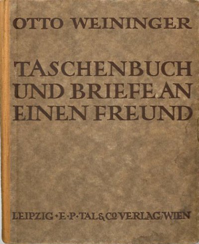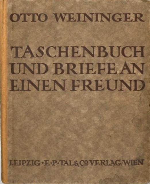 102 p., [1] c. di tav. : ill. ; 19 x15 cm. Herausgegeben [und mit einem Vorwort versehen] von Artur Gerber. Frühe Ausgabe dieser Tagebuchaufzeichnungen des durch sein Hauptwerk "Geschlecht und Charakter" (1903) und den darin vertretenen frauen- und judenfeindlichen Theorien früh berühmt gewordenen Filosofen und Sexualanthropologen jüdischer Abstammung Otto Weininger (1880 - 1903). Das Bändchen enthält des weiteren Briefe Weiningers an seinen Freund Artur Gerber sowie Briefe Strindbergs an Gerber, Weininger betreffend. Die Briefe Weiningers stammen aus der Zeit vom Juli 1902 bis August 1903, kurz vor seinem frühen Freitod. Legatura editoriale, coperta in cartone rigido con titolo impresso in nero al piatto e al dorso. All'interno una carta di tavola su carta patinata lucida con il ritratto dell'autore. Qualche segno del tempo alla legatura e alla coperta ma per il resto esemplare in buono stato. Codice libreria 3568.
