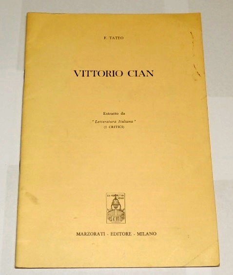 Francesco Tateo, Vittorio Cian, Marzorati editore, Milano, pp. 30, cm 25. Estratto da "Letteratura italiana", I critici.