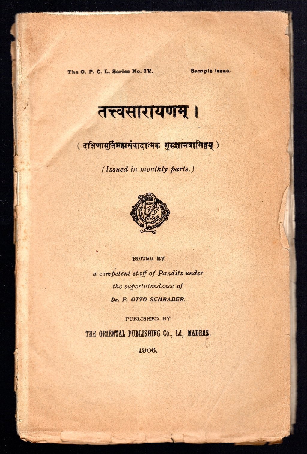 Opuscolo vintage in-8°, Madras, 1906. Saggi. Testo in lingua inglese e indiana. Parzialmente intonso. Copertina con strappetti.