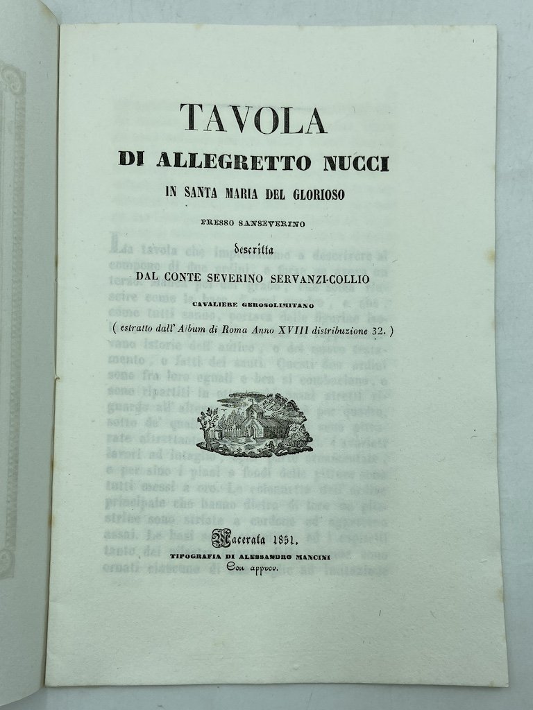 TAVOLA DI ALLEGRETTO NUCCI IN SANTA MARIA DEL GLORIOSO PRESSO SANSEVERINO descritta dal Conte Severino Servanzi-Collio Cavaliere Gerosolimitano.