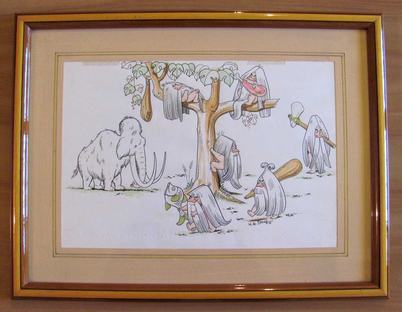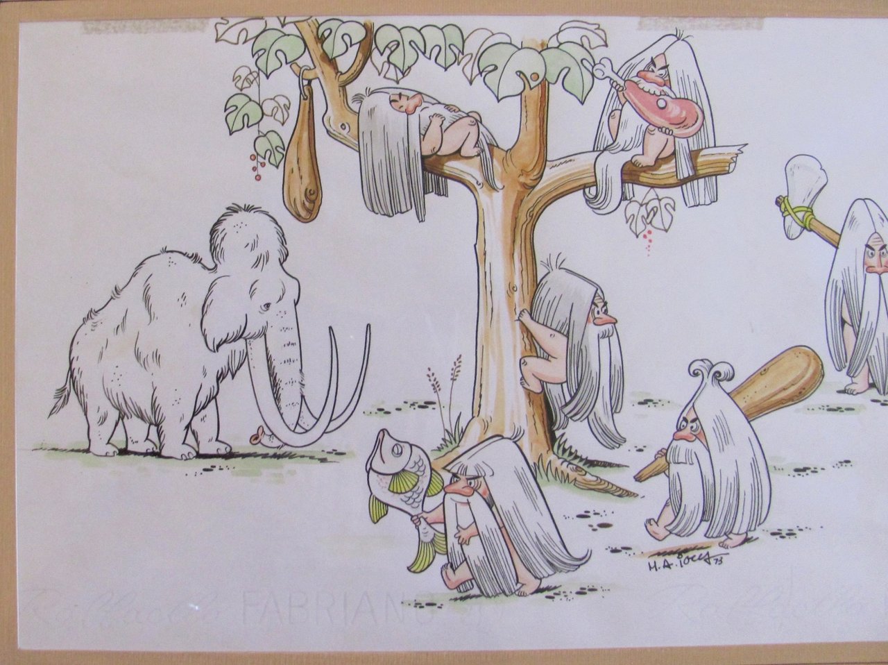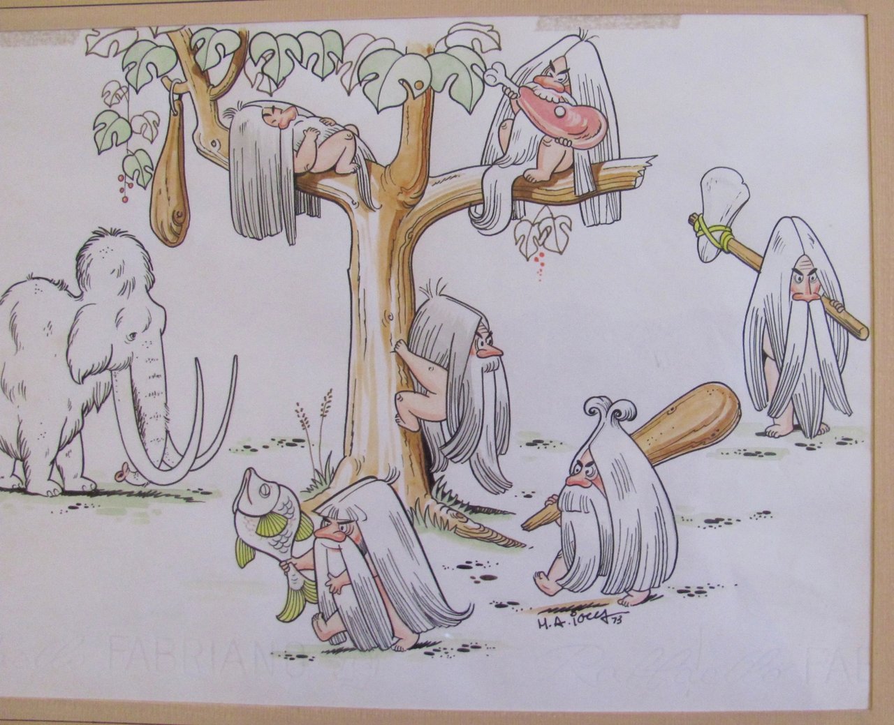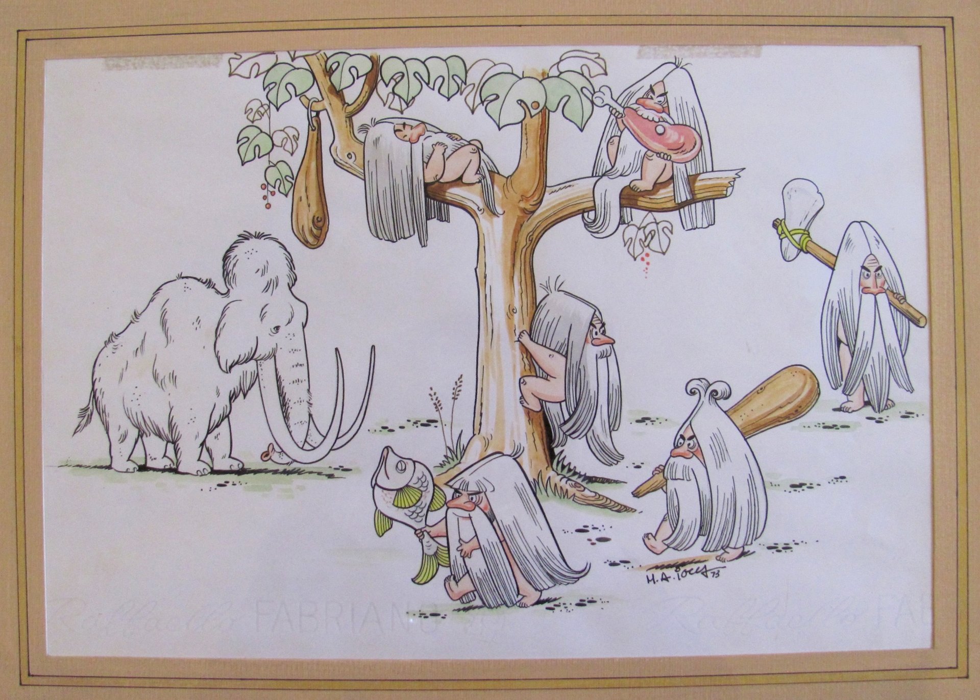Tavola originale di M.A. IOCCA (Uomini primitivi e Mammout), 1973 - Firmata