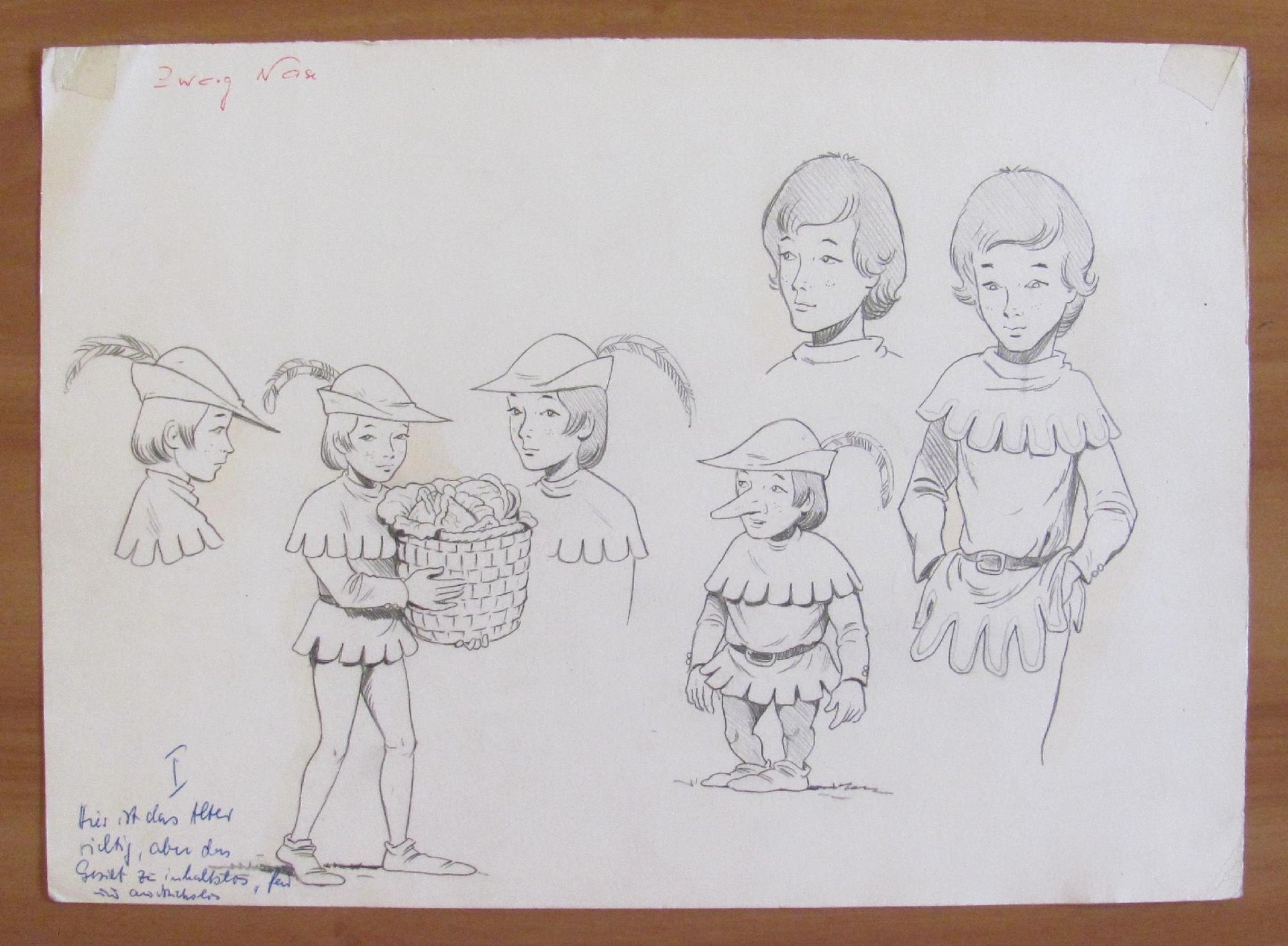Tavola Originale in matita e acquarello di Michele Arcangelo Jocca noto illustratore e fumettista italiano per un'edizione tedesca di Zwerg Nase (Naso di Gnomo). Non Firmata, anni '60. 35x25. Rara e in Ottimo stato. , Ottimo (Fine)
