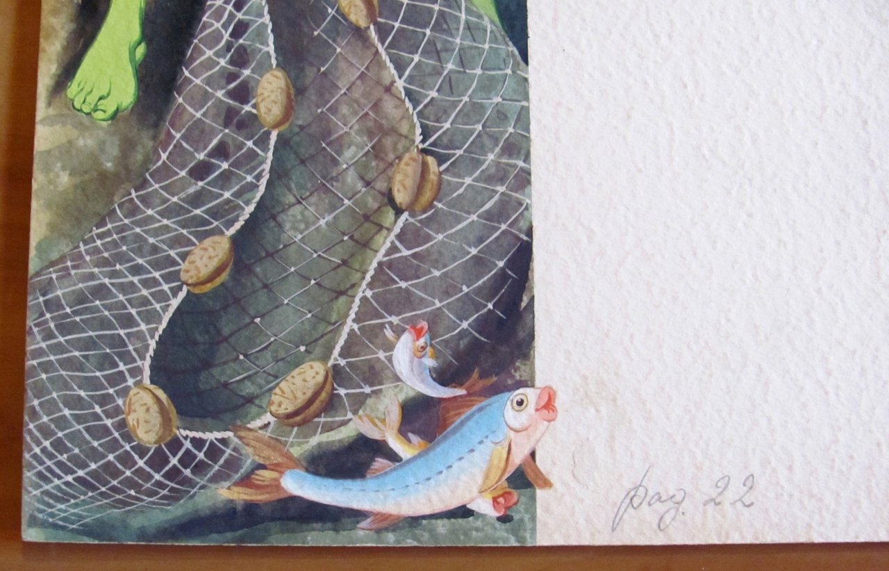 Tavola Originale PINOCCHIO e il PESCATORE VERDE, anni '60 - ill. LIVRAGHI - 24x34
