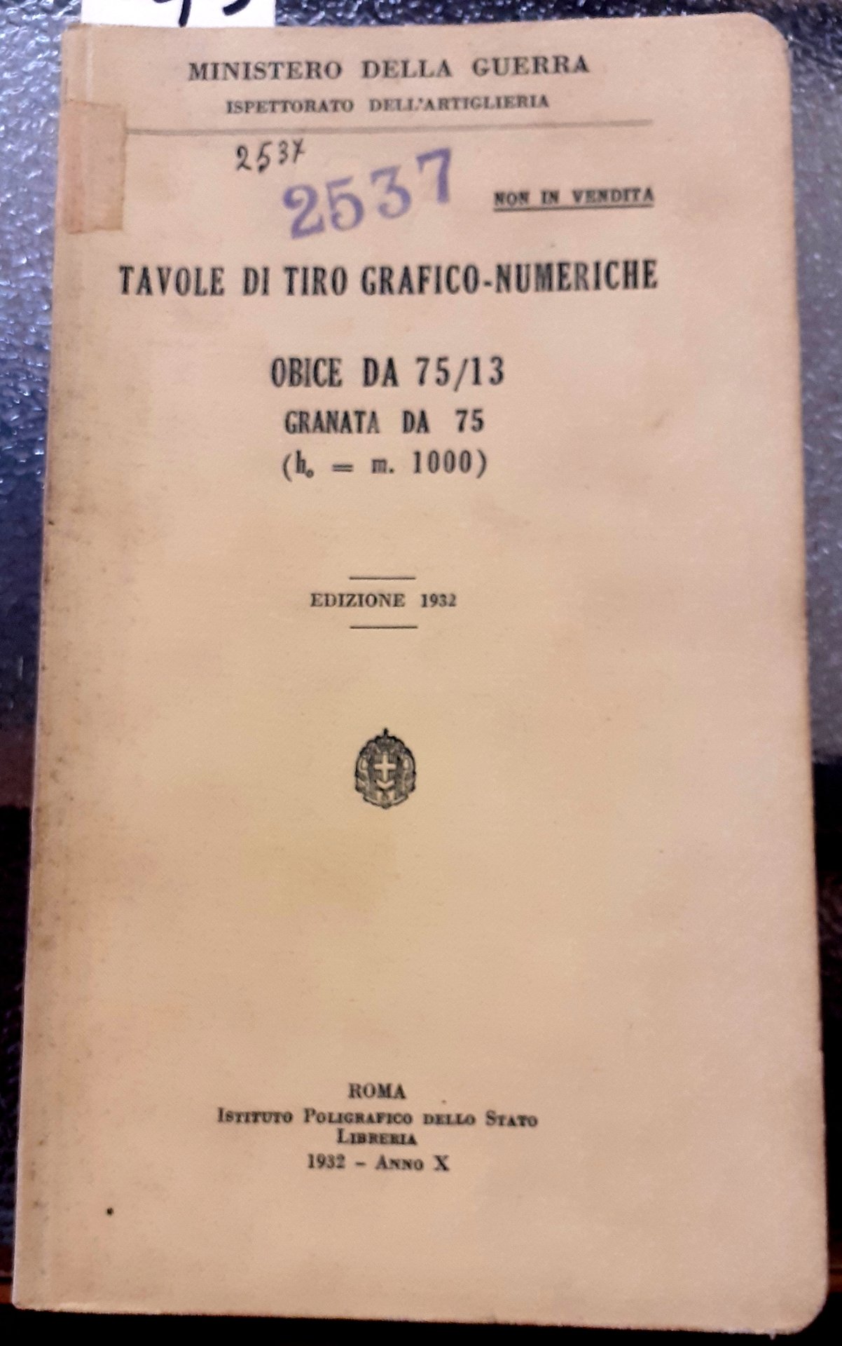TAVOLE DA TIRO NUMERICHE. OBICE da 75/13. GRANATA da 75 (ho=m.1000).