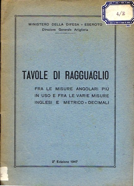 Tavole di ragguaglio fra le misure angolari in uso e fra le varie misure inglesi e metrico-decimali. 2a edizione.