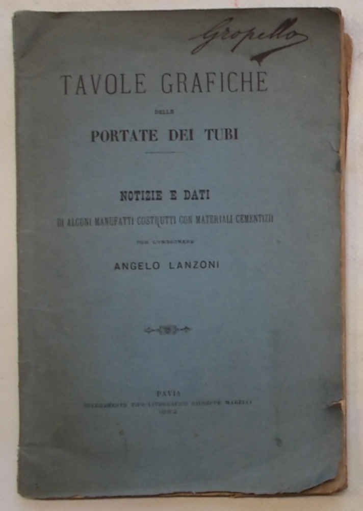 Tavole grafiche delle portate dei tubi. Notizie e dati di alcuni manufatti costruiti con materiali cementiferi.