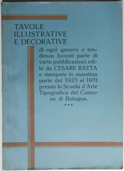 Tavole illustrative e decorative di ogni genere e tendenza facenti parte di varie pubblicazioni edite da Cesare Ratta e stampate in massima parte dal 1923 al 1931 presso la Scuola d'Arte Tipografica del Comune di Bologna.