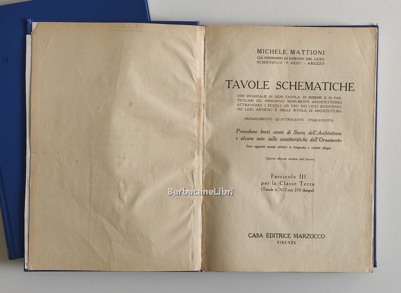Tavole schematiche di insieme e di particolari di monumenti architettonici attraverso i secoli (opera completa, 4 fascicoli in 2 voll.) Con didascalie in ogni tavola, ad uso dei licei scientifici, dei licei artistici e delle scuole di architettura