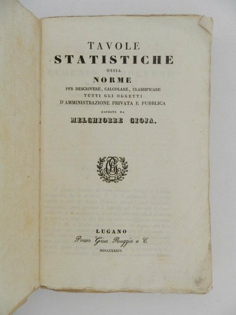 Tavole statistiche ossia norme per descrivere, calcolare, classificare tutti gli oggetti d'amministrazione privata e pubblica esposte da Melchiorre Gioja