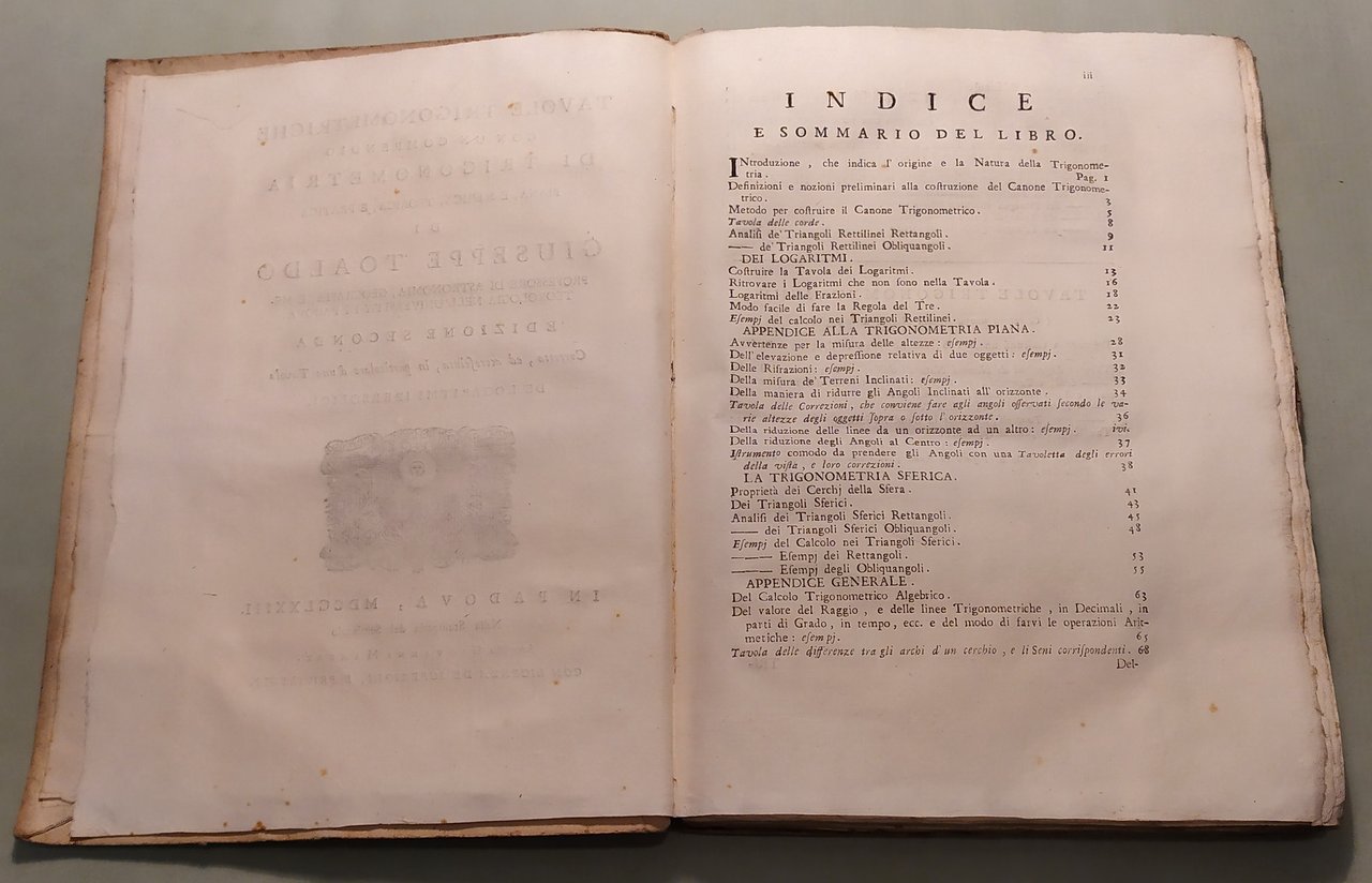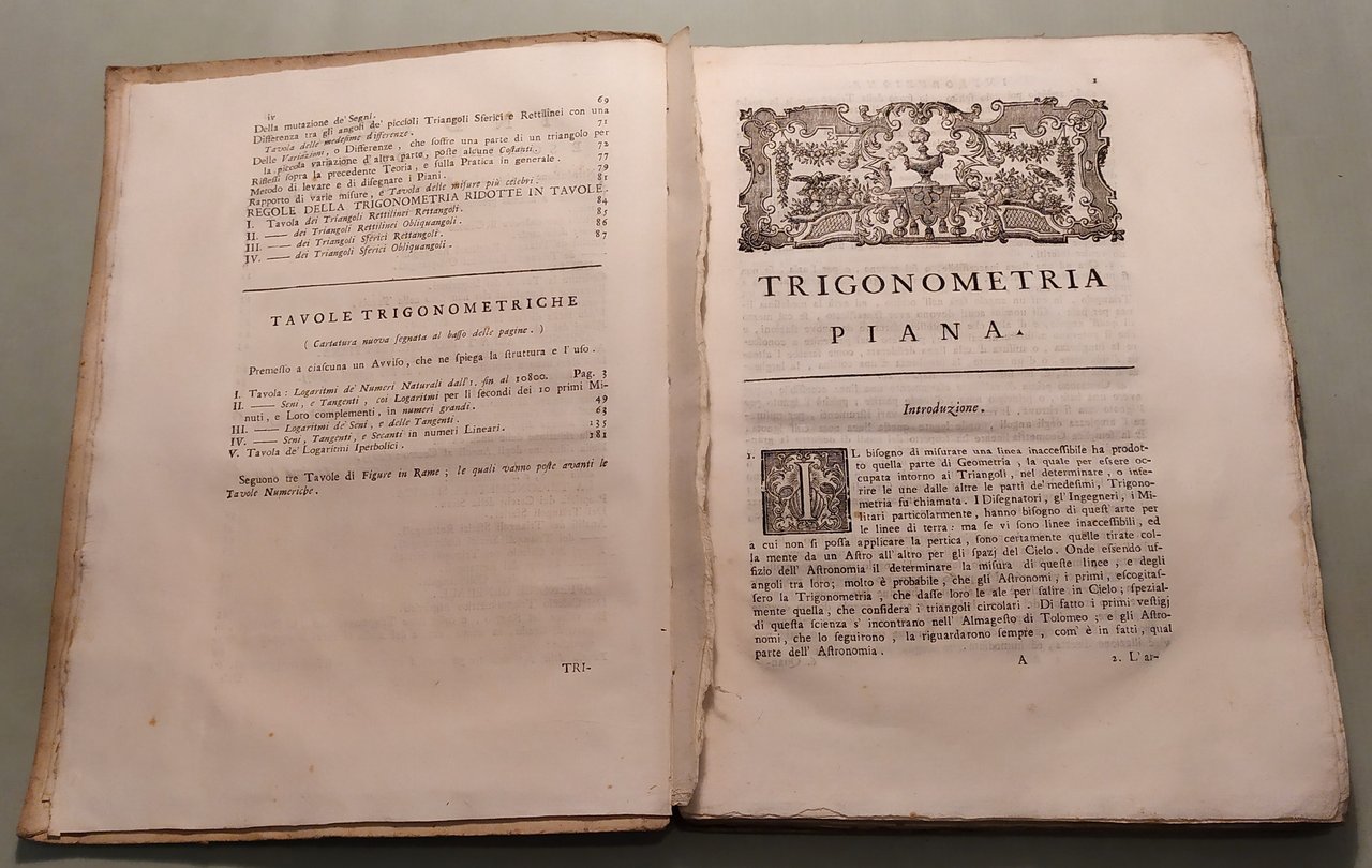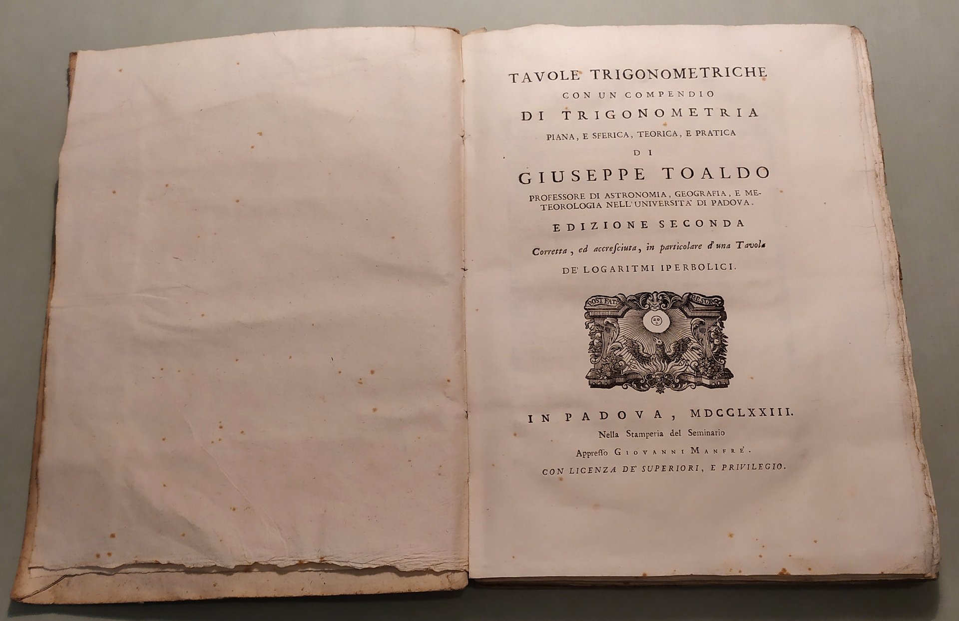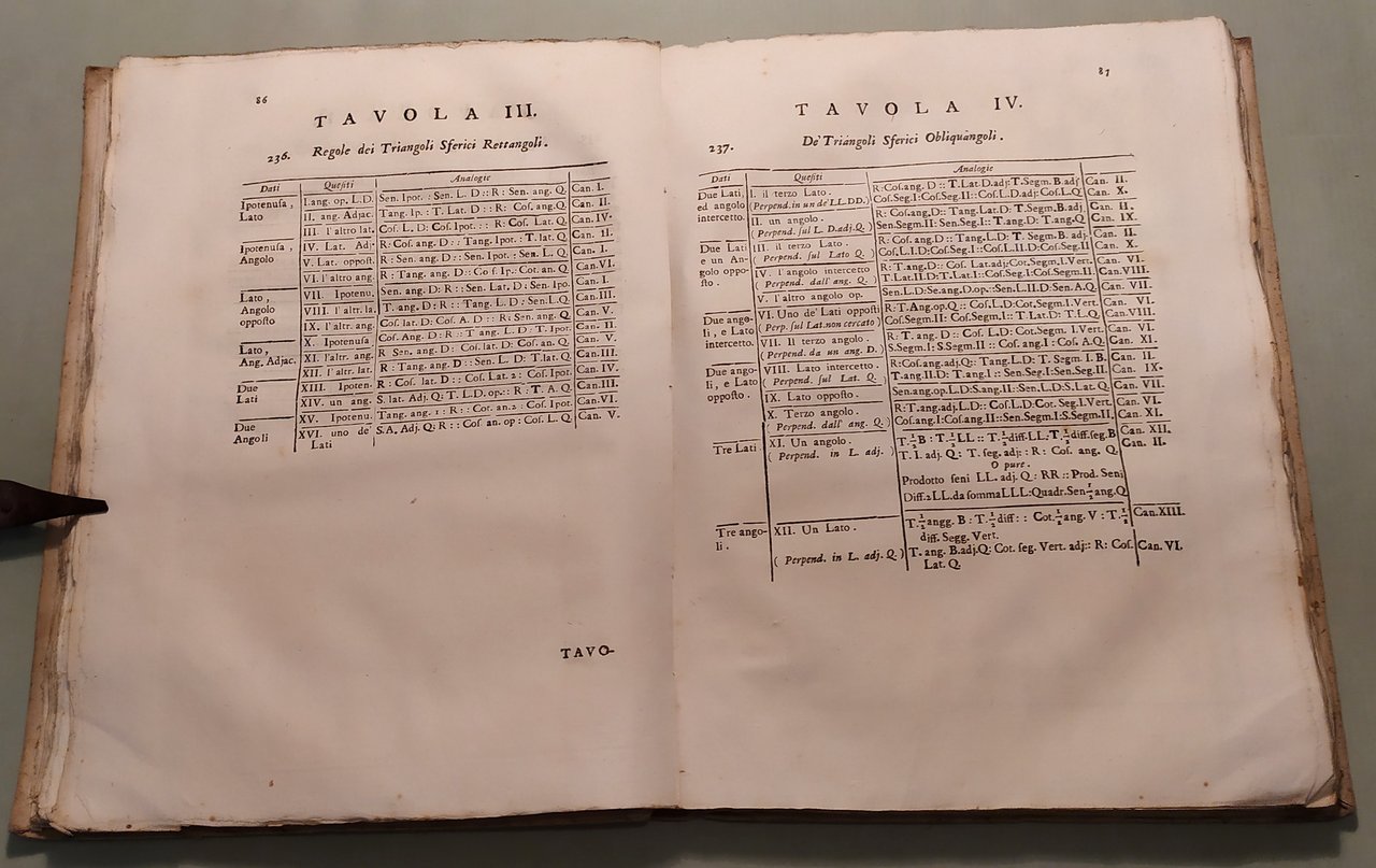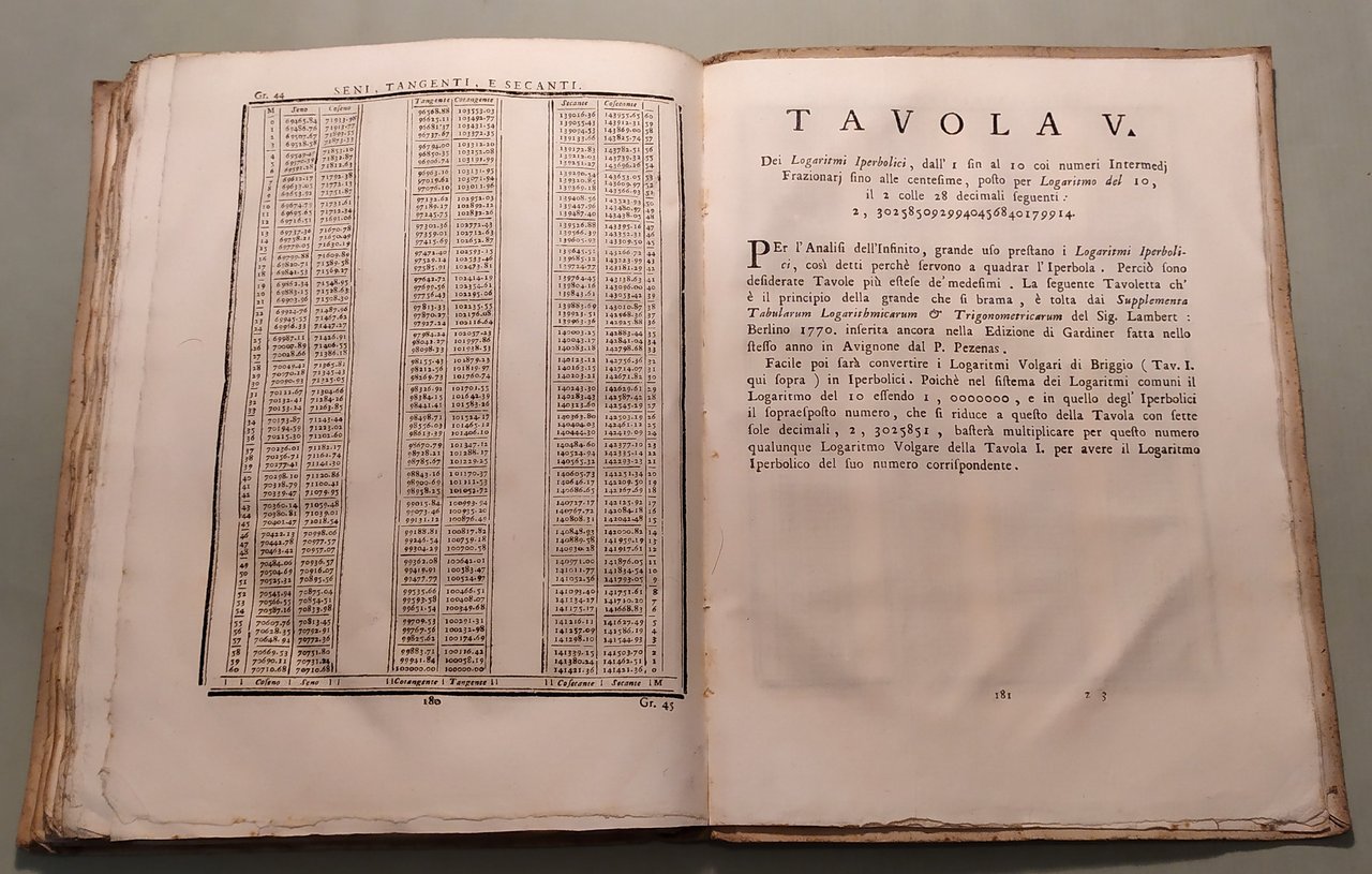 Tavole trigonometriche con un compendio di trigonometria piana e sferica, teorica e pratica. Edizione seconda ed accresciuta in particolare d'una tavola de' logaritmi iperbolici.