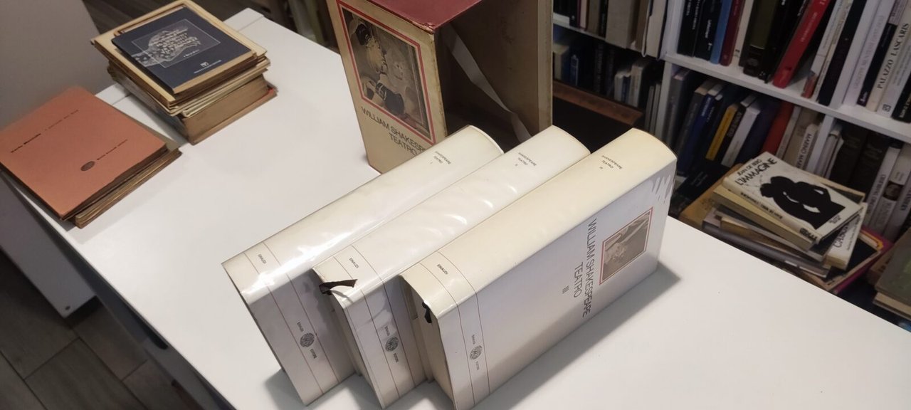 Shakespeare - Teatro 3 volumi Einaudi Millenni - Seconda edizione 1962 Libro in buone condizioni: ingiallimento e qualche lesione al cofanetto, riparato internamente. Dorsi acetato leggermente ingialliti, piccolo strappo alle prime 4 pagine del vol I, primissime pagine del vol II e III leggermente sgualcite. Non esitate a contattarci per altre foto o richieste. Saremo lieti di soddisfare ogni vostra esigenza.