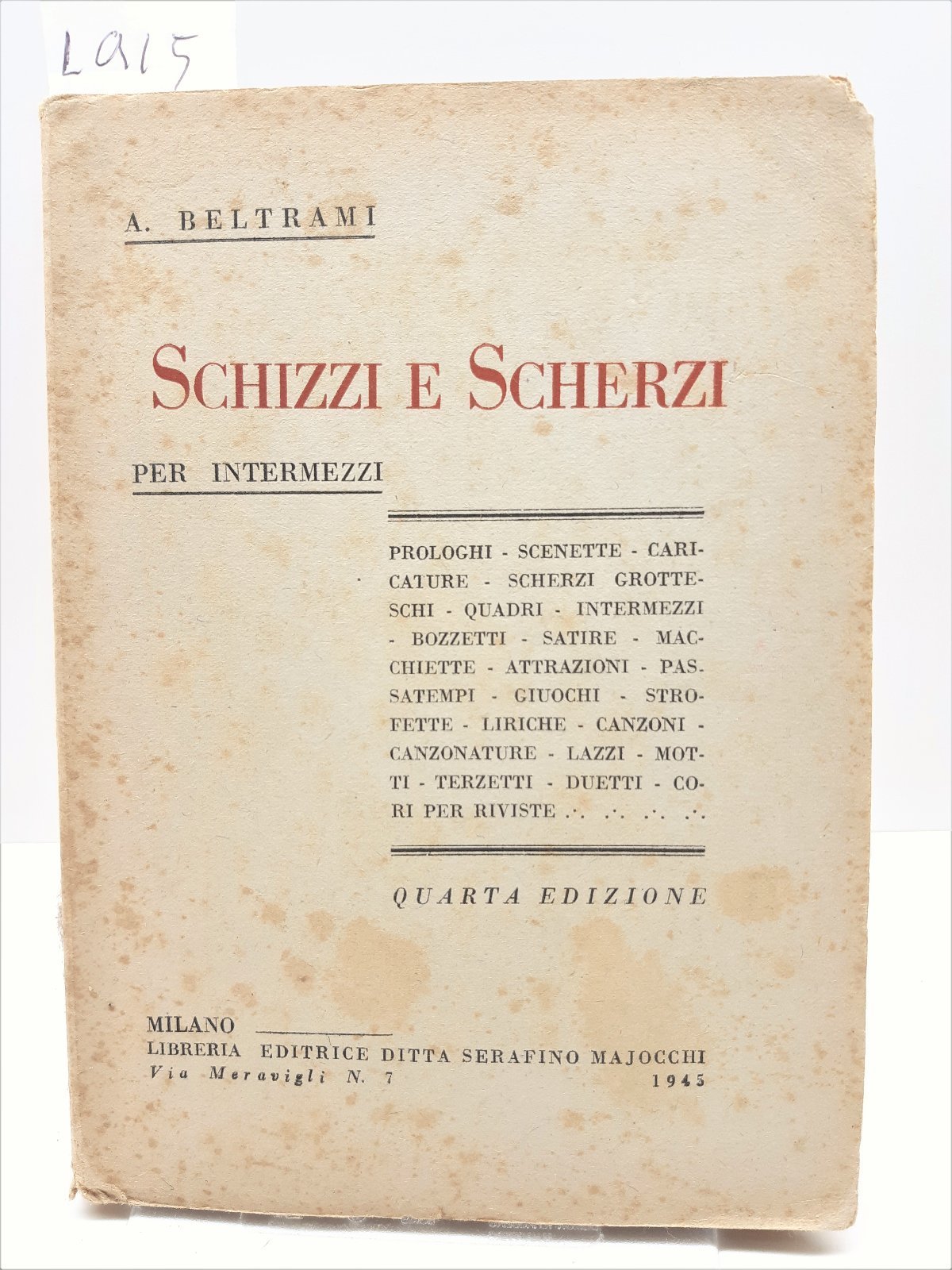 Teatro A Beltrami Schizzi e scherzi per intermezzi 4∞ edizione Majocchi 1945