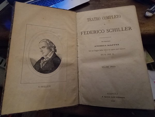Teatro completo di Federico Schiller traduzione del cavaliere Andrea Maffei con un saggio sulla vita e le opere dell'autore di G. De S. Volume unico.