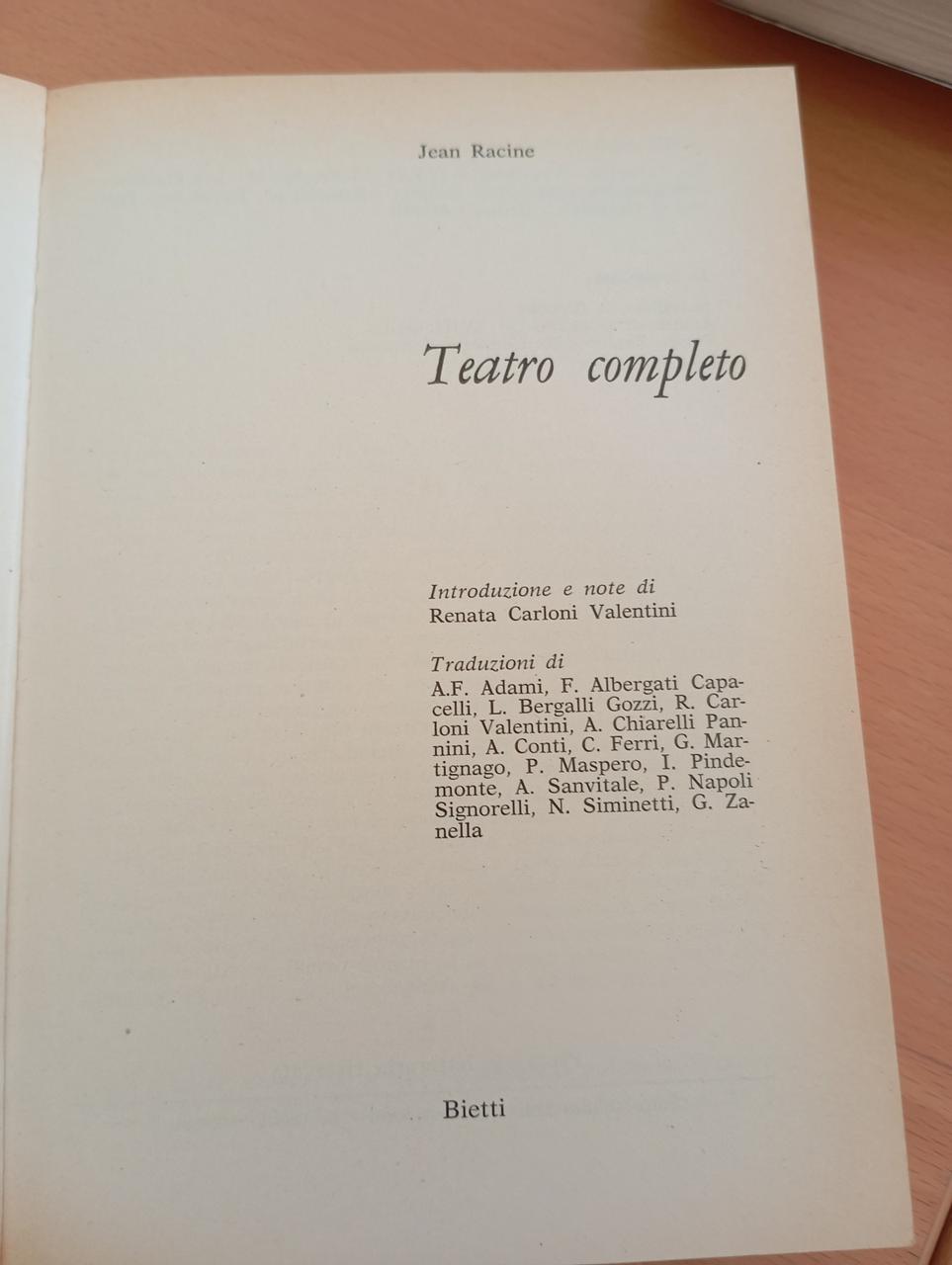 Teatro completo, Jean Racine, Renata Carloni Valentini, Bietti