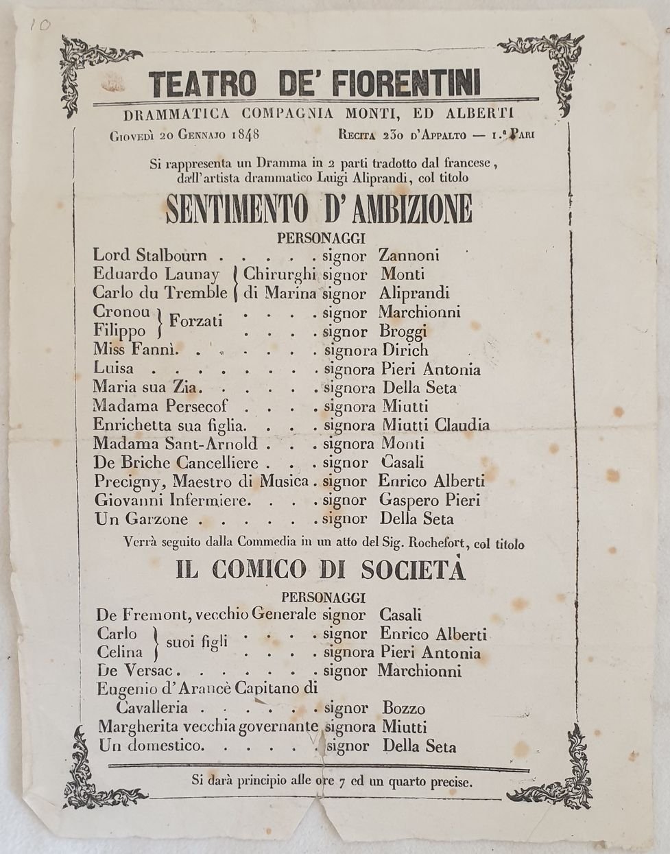 TEATRO DE FIORENTINI DRAMMATICA COMPAGNIA MONTI ED ALBERTI GIOVEDI 20 GENNAIO 1848