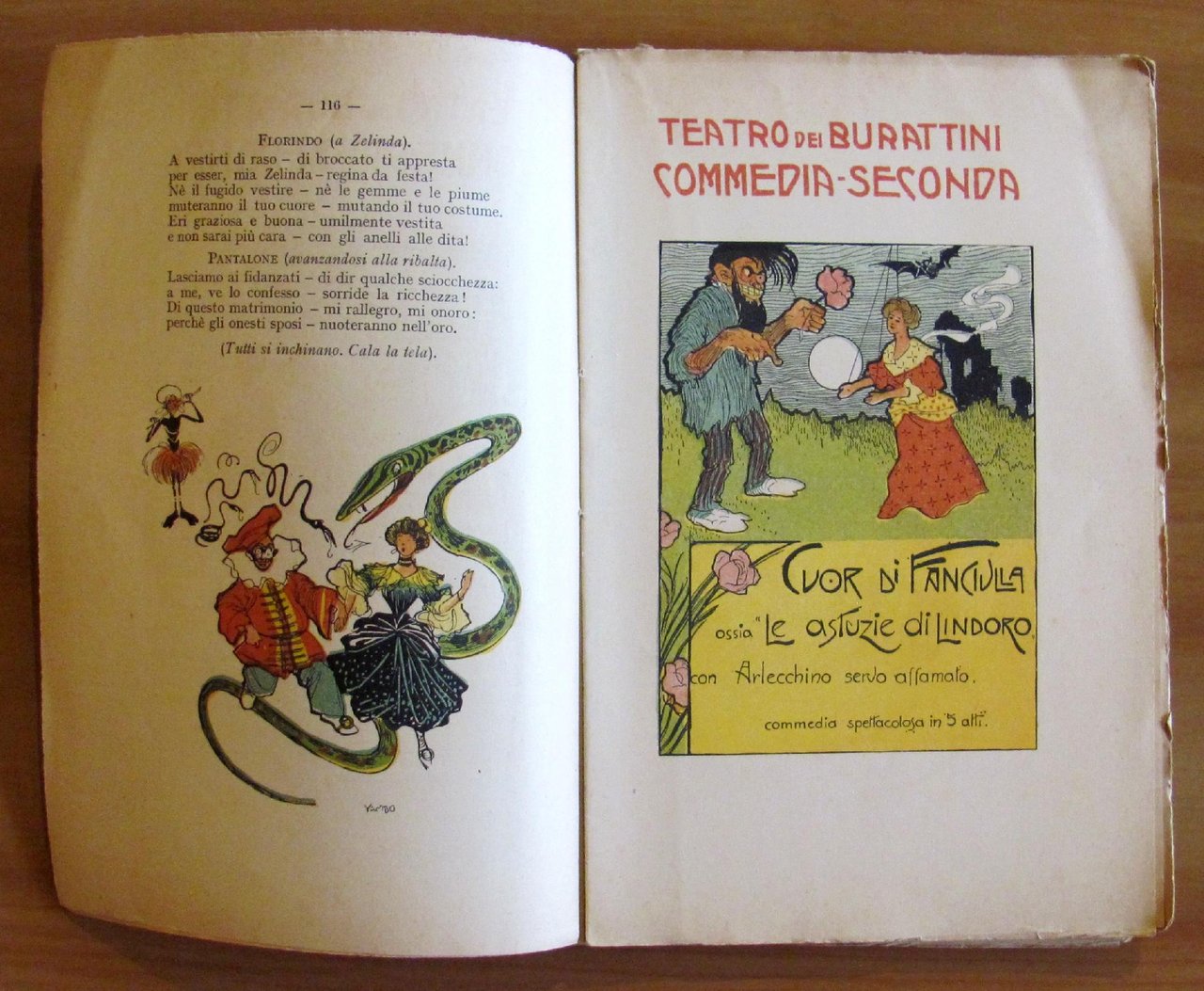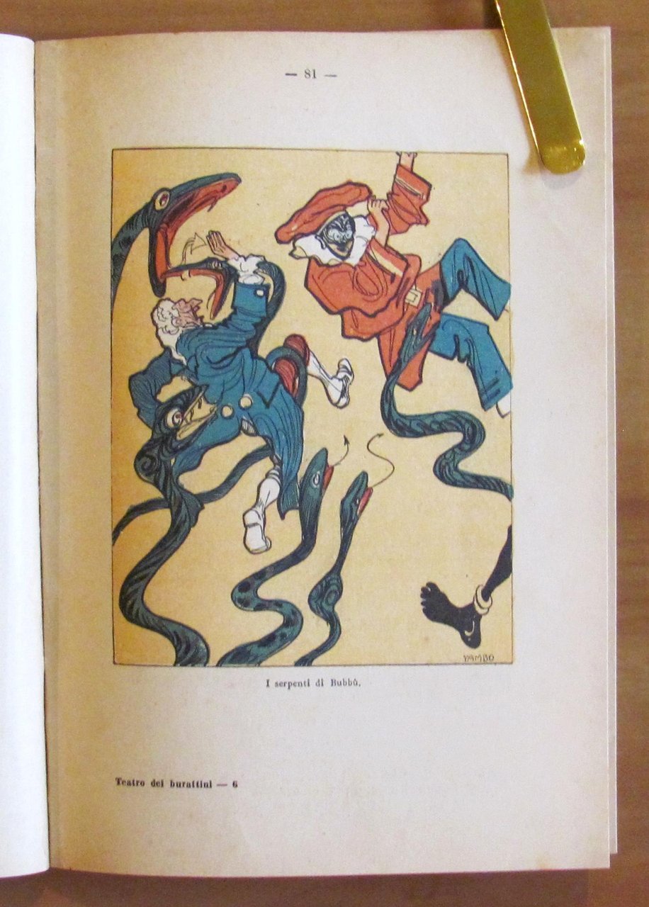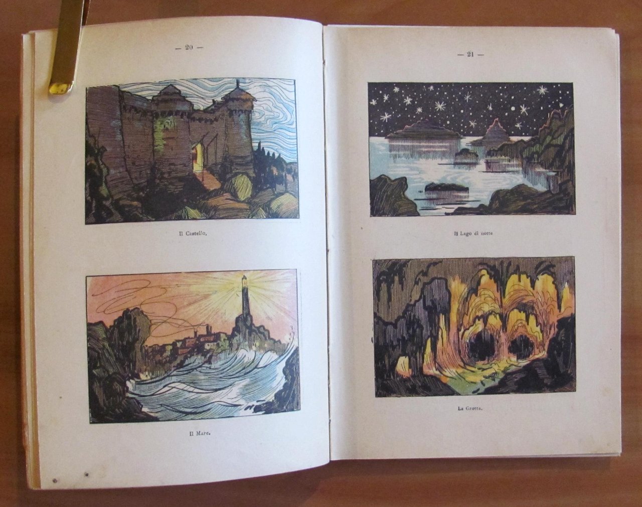Splendida copertina a colori e moltissime illustrazioni a colori n.t., anche a piena pagina, di Yambo . Casa Editrice Scotti - Roma, I edizione 1906. Brossura originale sciolta contenente l'opera completa in 16 fascicoli di cui i primi 7 leggermente più piccoli e legati al dorso, provenienti da rilegatura,