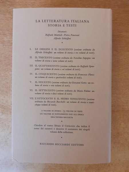 Collana diretta da Raffaele Mattioli, Pietro Pancrazi, Alfredo Schiaffini.