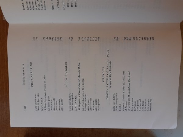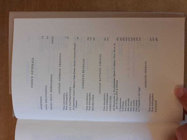 A cura di Renzo Cremante. E' contenuta un'opera teatrale per ciascuno degli autori trattati: Trissino, Rucellai, Giraldi, Speroni, Aretino ed Dolce.