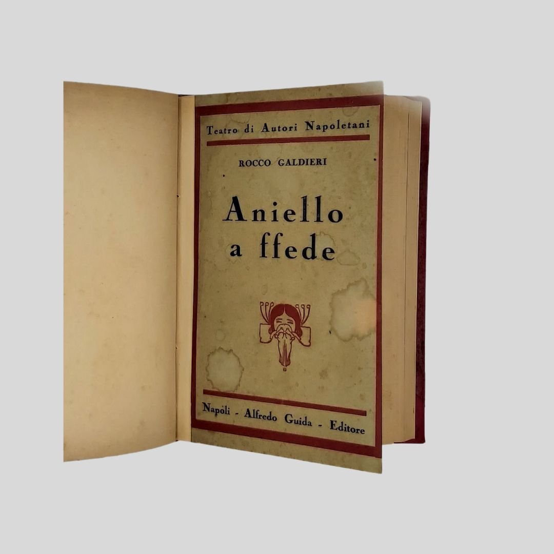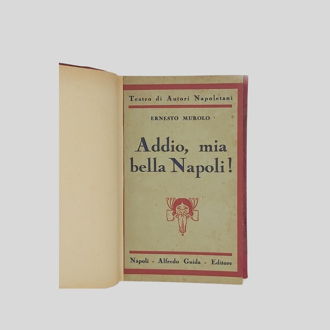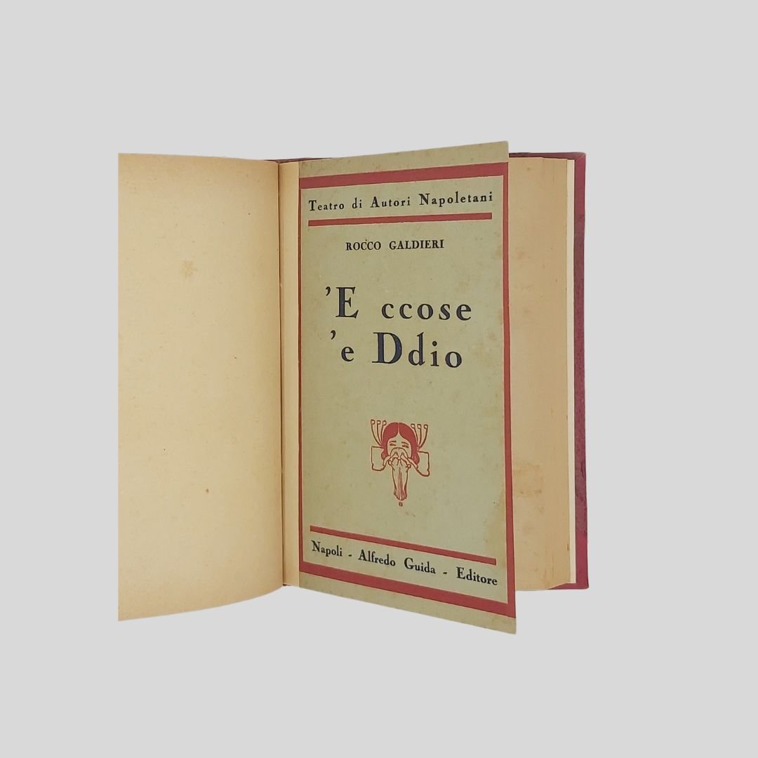 In-16° (cm 19 ca.). Legatura anni ’50-60 del Novecento in similpelle rossa. Conservate le copertine editoriali anteriori. Insignificanti per quanto rare fioriture. Non comune. La raccolta contiene: 1. MUROLO Ernesto – Il Compagno. Dramma in un atto, pp. 44 (2). 2. MUROLO Ernesto – Addio mia bella Napoli. Commedia napoletana in 2 atti, pp. 106. 3. GALDIERI Rocco Aniello a ffede. Dramma in 3 atti, pp. 99. 4. GALDIERI Rocco (Rambaldo) – ‘E ccose ‘e Ddio. Dramma in 3 atti, pp. 103.