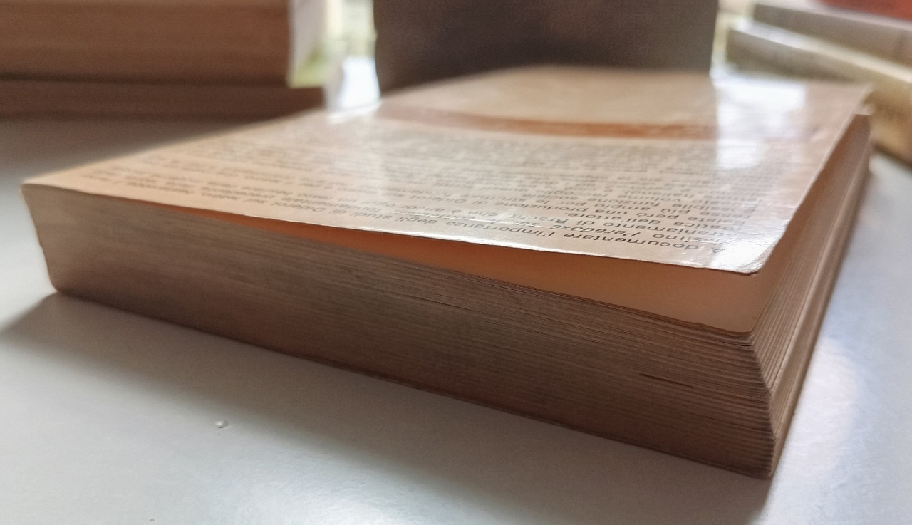 Copertina con segni di usura, come da foto, tagli scuriti, assetto un po' asimmentrico, come da foto