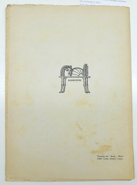 legatura morbida editoriale in condizioni accettabili con fioriture e aloni diffuse ai piatti, uno strappo di circa cm 5 al margine inferiore del piatto inferiore, ex libris con numero di catalogazione, una piega all'angolo inferiore del piatto anteriore, interno in discreto stato, tagli irregolari, fioriture alle pagine interne che non disturbano la lettura, numero pagine 32 dimensioni cm 21,5 * 15,5