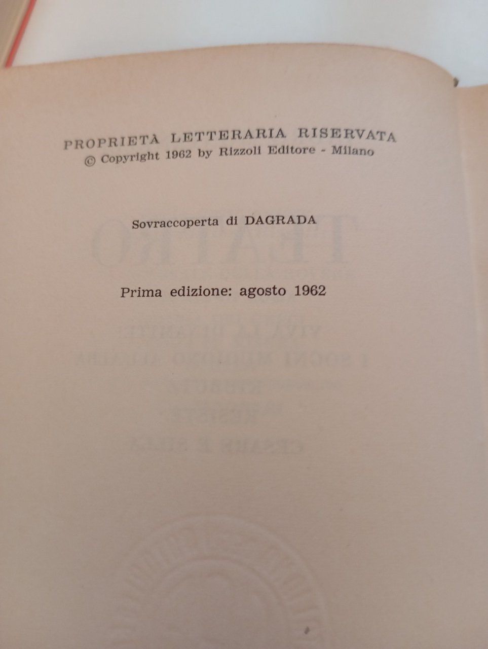Teatro, Indro Montanelli, Rizzoli, 1962