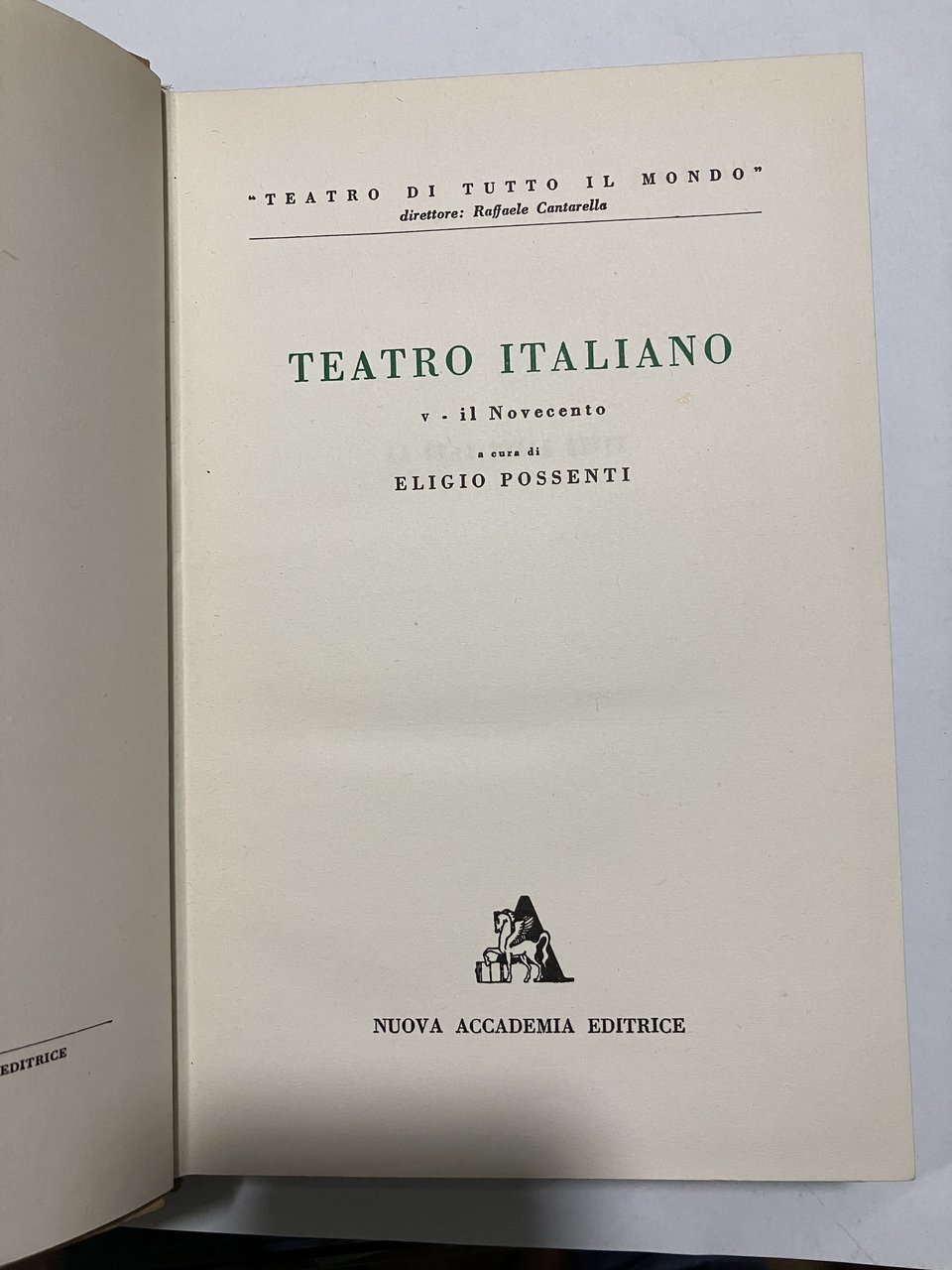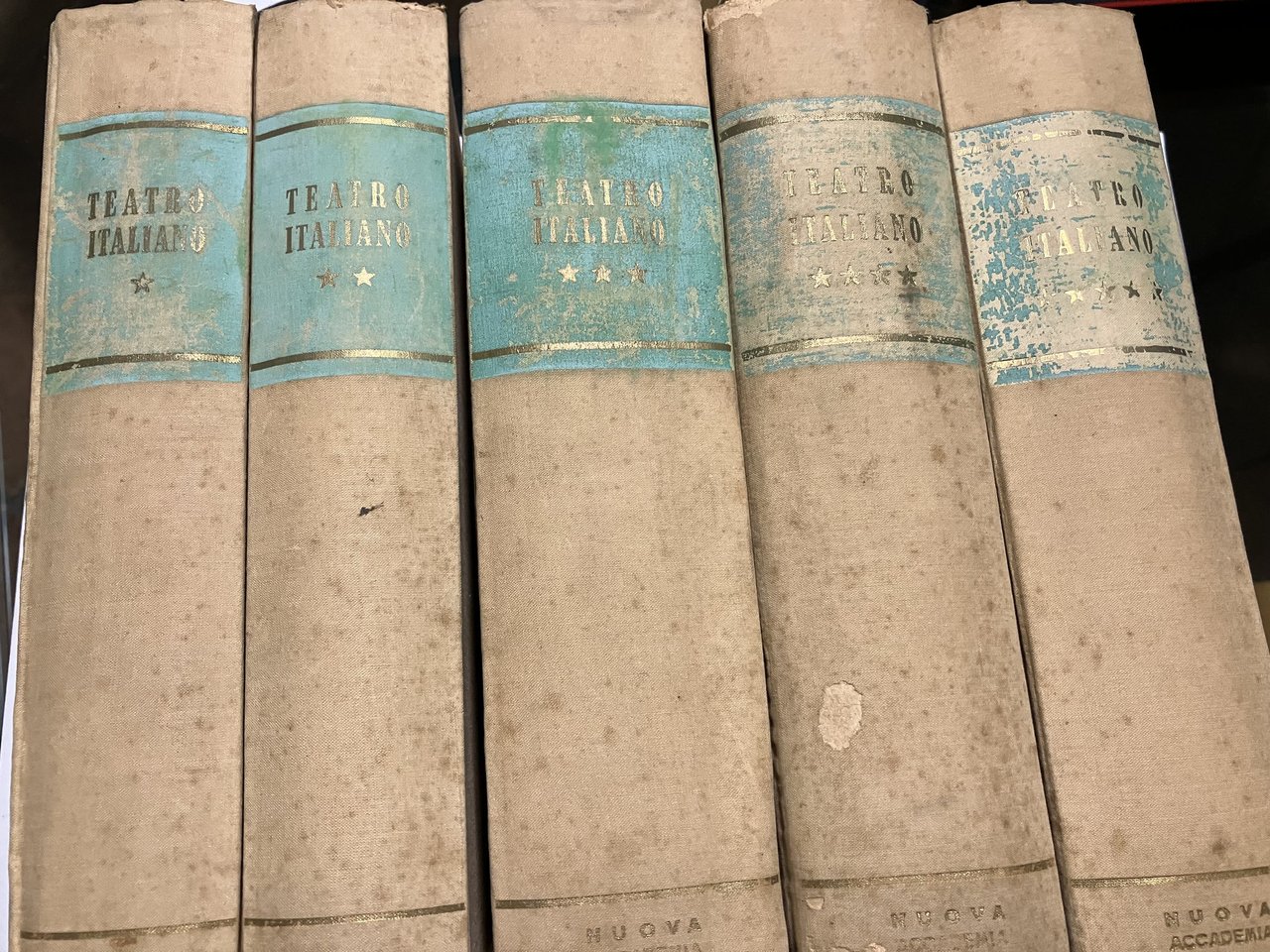 (Collana : Teatro di tutto il mondo in Thesaurus Litterarum) Volume 1: Le origini e il Rinascimento;Volume 2 dal dramma pastorale al Settecento;Volume 3 da Goldoni al Romanticismo; Volume 4 il teatro della nuova Italia; Volume 5 Il Novecento - DETTAGLIO DELLE CONDIZIONI : Buono - (1.XIX.4).