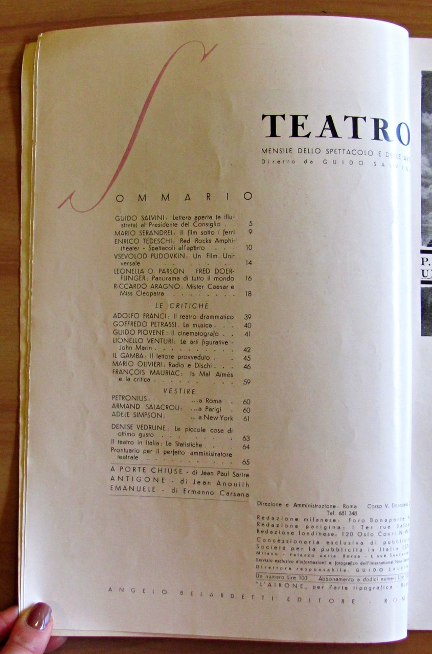 TEATRO MENSILE dello SPETTACOLO e delle ARTI - Marzo 1946 N.2 - Tavola MARI*