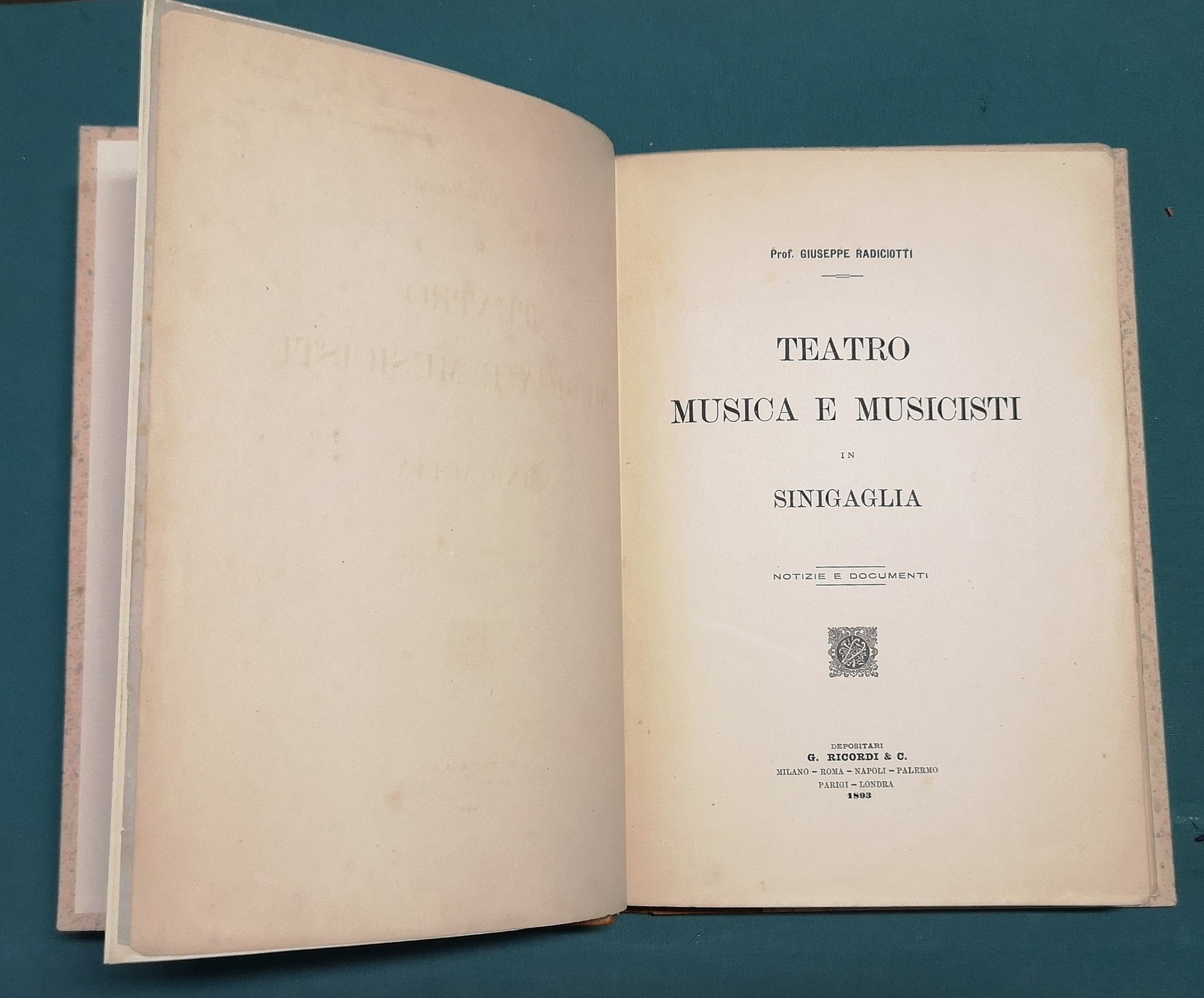 >in-4, pp. XIII, 229, leg. d'amatore m. pelle, tit. oro al dorso, broch. edit. cons. Opera divisa in 4 parti. La prima parte è dedicata alla Storia del teatro in Sinigaglia: I) Teatro nella sala comunale. II) Teatri privati nel secolo XVIII. III) Teatro Condominiale. IV) Teatro Comunale. V) Nuovo Teatro Comunale la Fenice. La seconda parte concerne gli spettacoli rappresentati nel pubblico teatro di Senigaglia dal 1566 al 1892. La terza all'arte musicale in Senigaglia dal sec. XVI ai nostri giorni. La quarta parte infine comprende le biografie dei musicisti sinigagliesi. Esempl. con dedica autografa dell'autore in antiporta.