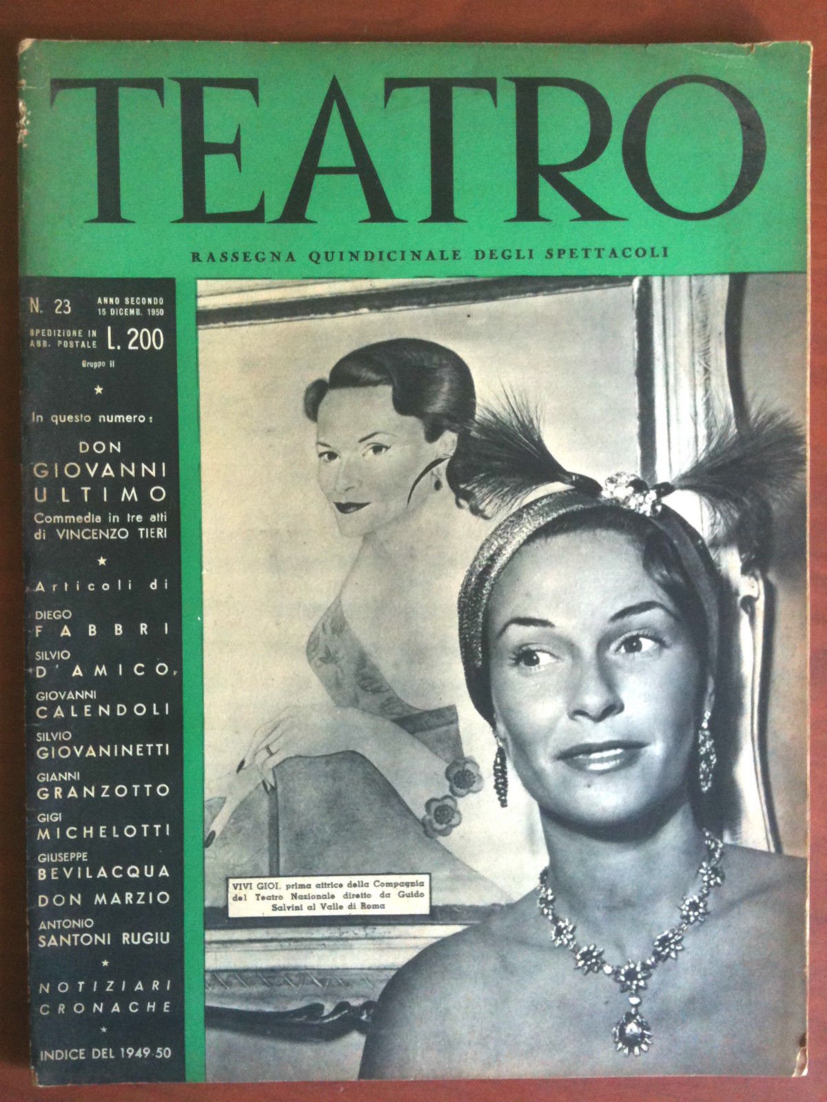TEATRORassegna quindicinale degli spettacolin^ 23 Anno II - 15 Dicembre 1950Copertina: Vivi GioiIn buone condizioni salvo piccoli danni copertina(167 g)E8344