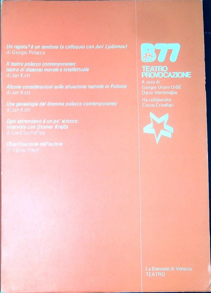 Ventimiglia, Dario; Ursini Ursic, Giorgio Teatro provocazione. Venezia, La Biennale 1977, 77 carte ; 29 cm. (64269)